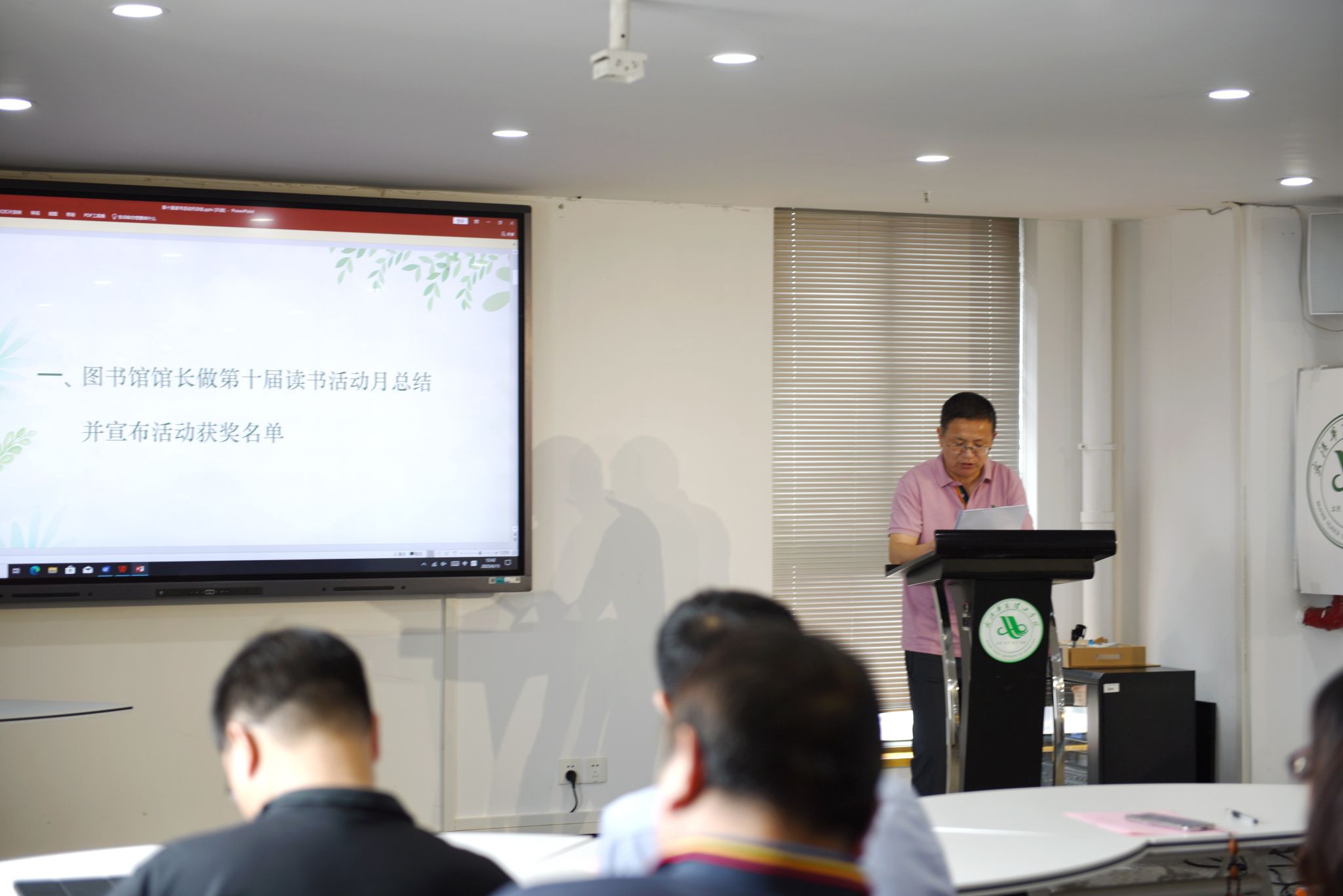6月15日,beat365官方网站第十届读书活动月总结及颁奖大会在行政楼1401会议室召开,副校长丁成忠应邀出席本次会议。会议由图书馆副馆长张莹主持。