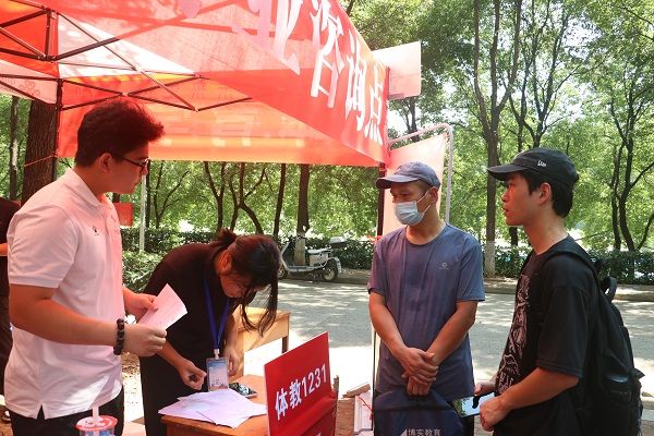 志愿者们在各自的岗位上尽职尽责。在西门和北门引导新生的志愿者顶着烈日,脸上挂着汗水,但却没有一丝抱怨。新生们一到校,迎接他们的就是一张张热情的笑脸,一句句亲切的问候,以及一项项贴心的服务。部分宿舍志愿者一个人要对接6名新生,昨天没有来齐的,今天要继续负责带领剩下的新生走完各项流程,校园里满是他们奔忙的身影。志愿者王艳说道:“虽然身体累,但一想到自己是在做一件很有意义的事情时,内心就充满了力量。”