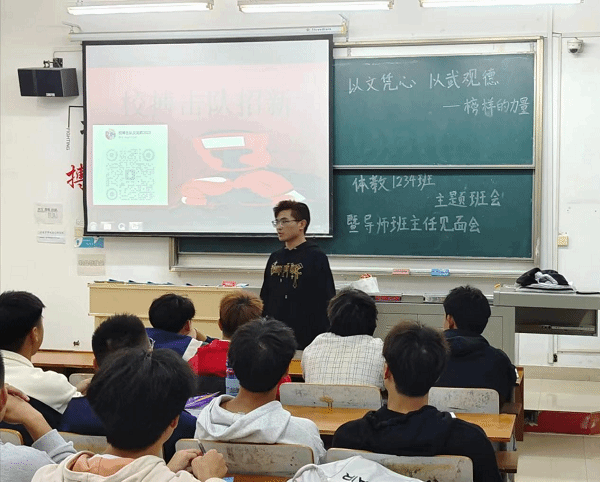 导师班主任宁梦茹老师带领大二优秀武术格斗校队的学长现场分享了自身学习、竞赛的经历与感悟,通过榜样的力量,让大家切实感悟到体育人要主动接受吃苦困难与磨练,面对各种失利,也能前进不止。