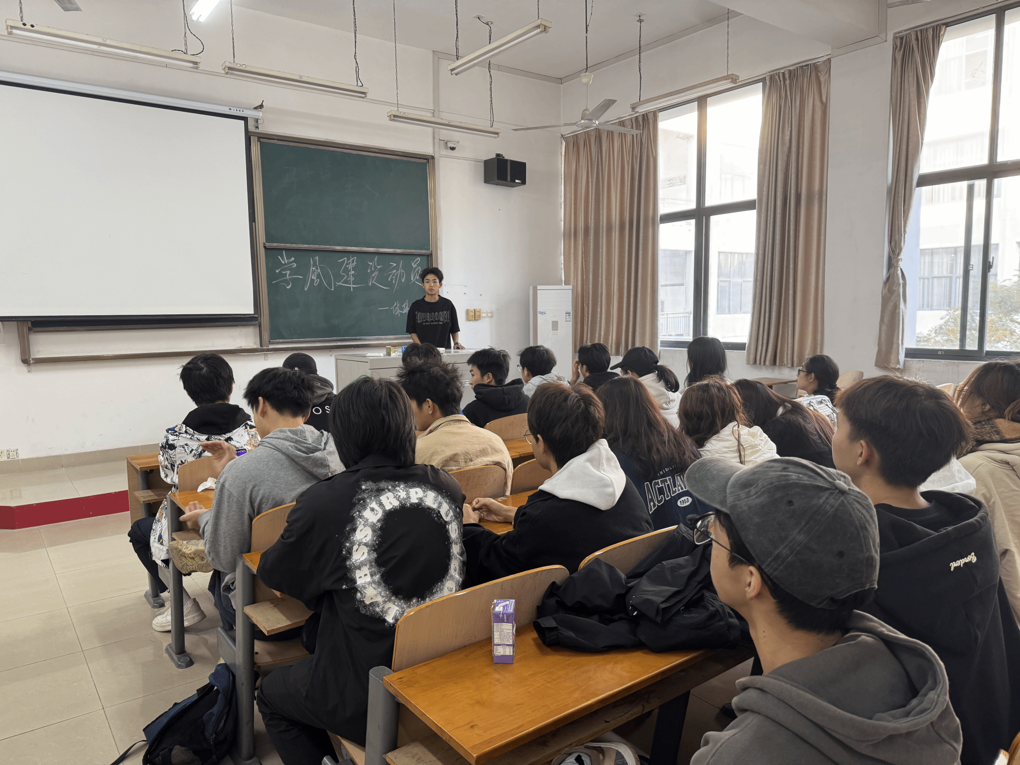 11月12日,休体1233班在教室内召开了班级内部学风建设动员大会。此次大会旨在进一步加强班级学风建设,营造更加积极向上的学习氛围,提高同学们的学习积极性和主动性。会议由班长李尚丞主持,全班同学参加了会议。