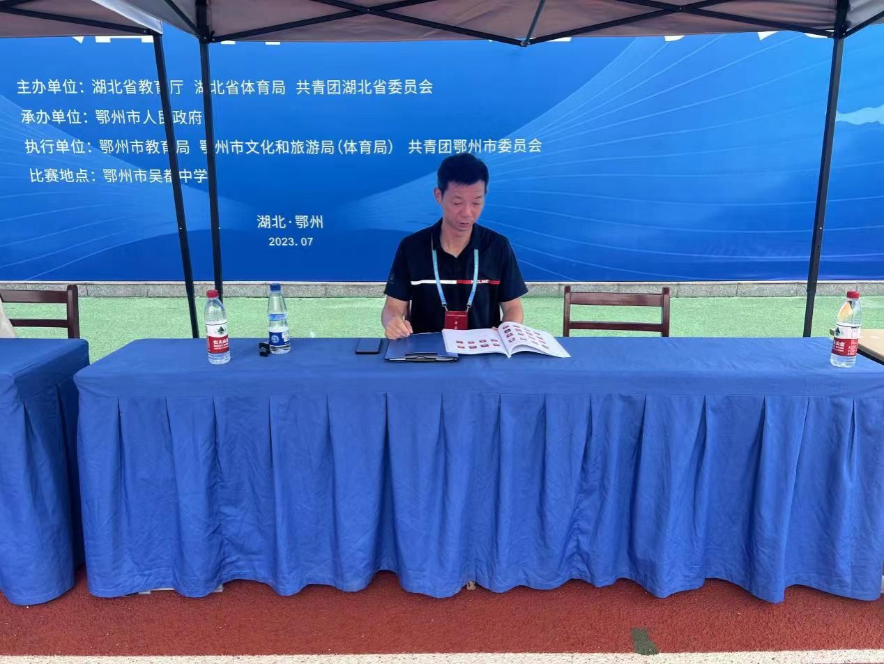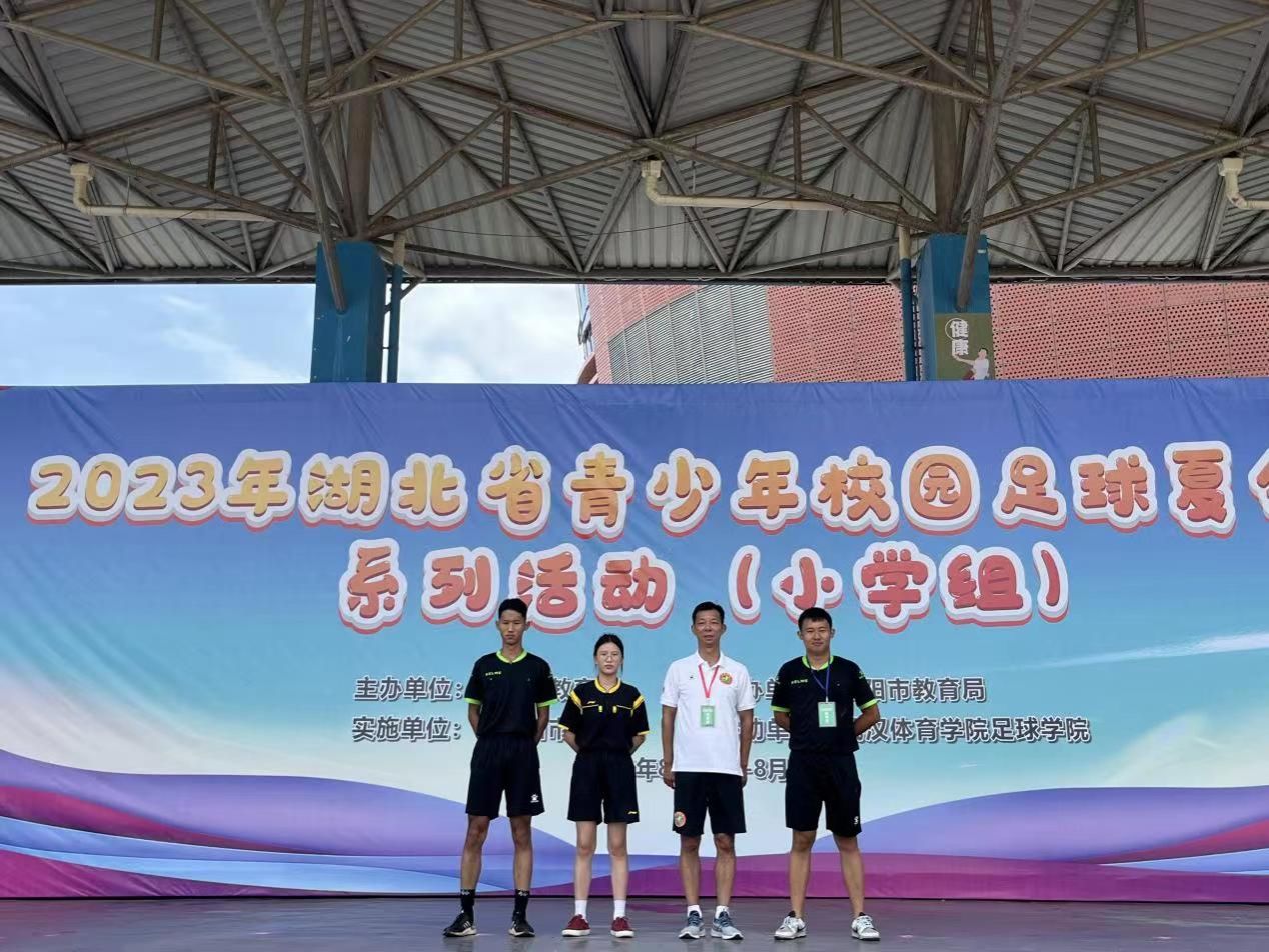 结合开展学习贯彻习近平新时代中国特色社会主义思想主题教育,全方位推进青少年足球发展,促进青少年健康发展,湖北省于2023年7月——8月分别在湖北省多地举行足球比赛,其中湖北省第十六届中学生运动会初中组于7月9日至16日在鄂州举行,高中组于7月24日至30日在鄂州举行。2023 年湖北省青少年足球锦标赛(男子U16-18 组)于8月3日至13日在荆门举行,2023 年湖北省青少年足球锦标赛(女子U16-18组)于8月4日至10日在襄阳举行,2023湖北省青少年校园足球夏令营(小学组)于8月6日至11日在老河口举行。我院近20名师生受湖北省教育厅和湖北省足协选派参与赛事执法工作,共计在省内四个赛区执裁近百场。
