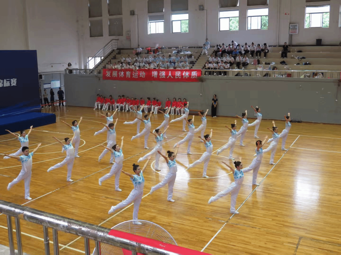 本次比赛吸引了全省多所高校代表队参与角逐。学校健美操队在领队赵燕、教练张曦晨和黎明的悉心指导下,以整齐划一的动作、富有感染力的表现赢得评委和观众的一致认可。beat365体育学院公体教师付金鑫为组委会选派裁判,全程参与,为团队提供了专业支持。
