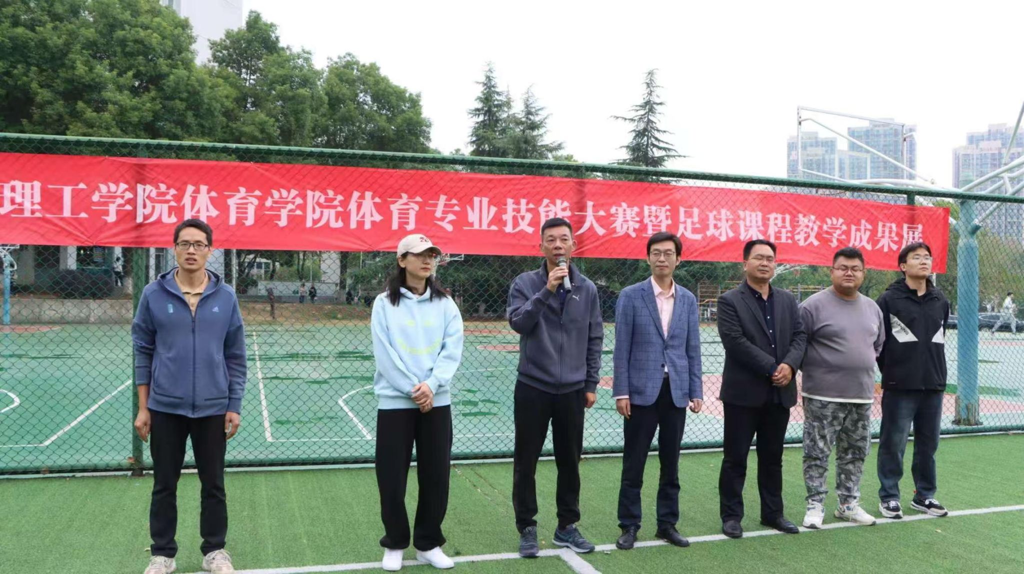 2024 年 10 月 21 日中午 12 点 30,体育学院于校内拓展基地举办体育教育专业学生足球基本功大赛开幕式。本次大赛由体育学院主办,体育学院体育教育系承办。体育学院院长刘涛、党总支副书记毛峥毅、副院长赵燕、专业老师和学生裁判员、各班级学生代表参加了此次开幕式。