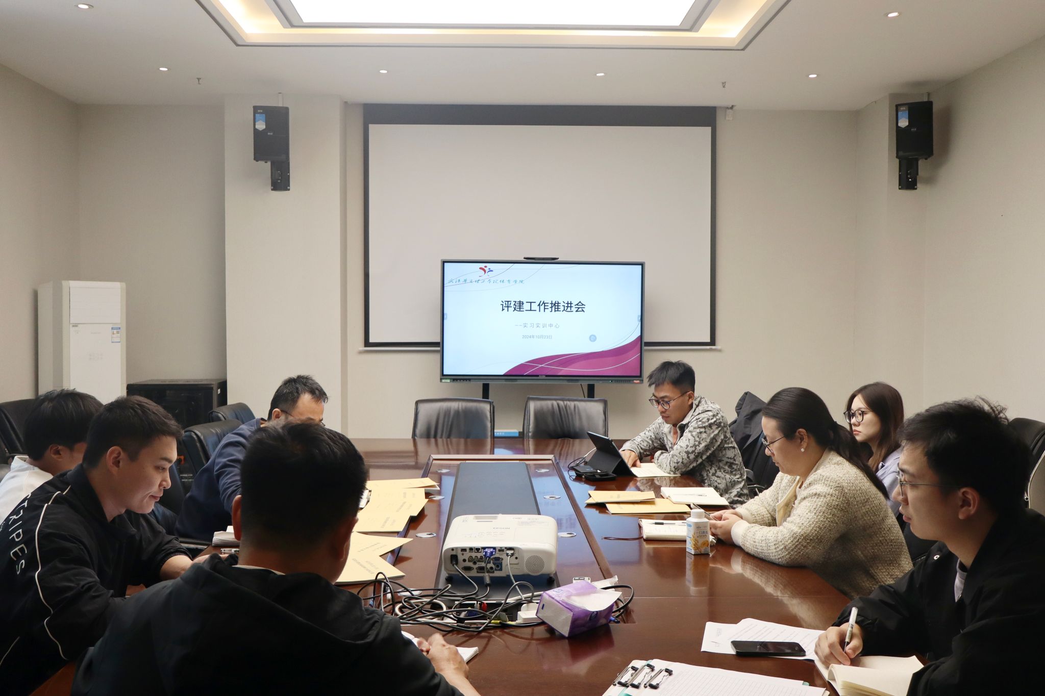 10月23日12:30,体育学院实习实训中心于体育馆二楼会议室召开了评建工作推进会。会议由实习实训中心主任付炜主持,休闲体育系副主任甘文韬,教师陈丽、闫成龙、龙云、蒋春强、张曦晨和张启龙共同参加。