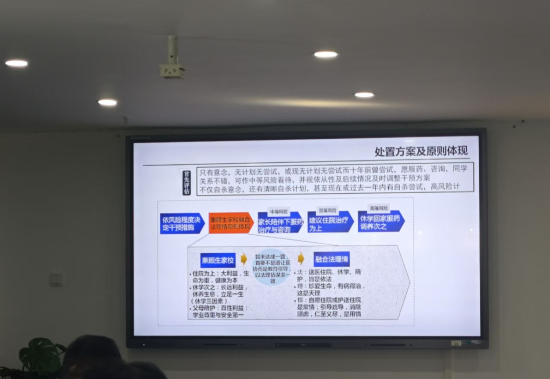 讲座中,赖教授深入分析了当前高校危机干预所面临的五大困境,并针对这些困境提出了具体的解决方案。他结合大量实际案例,以通俗易懂的方式进行了讲解,使得在场的辅导员们能够更直观地理解和掌握相关知识。同时赖教授对问题的精准分析和解决方案的提出,取得了参会人员的热烈掌声,大家纷纷表示收获颇丰。