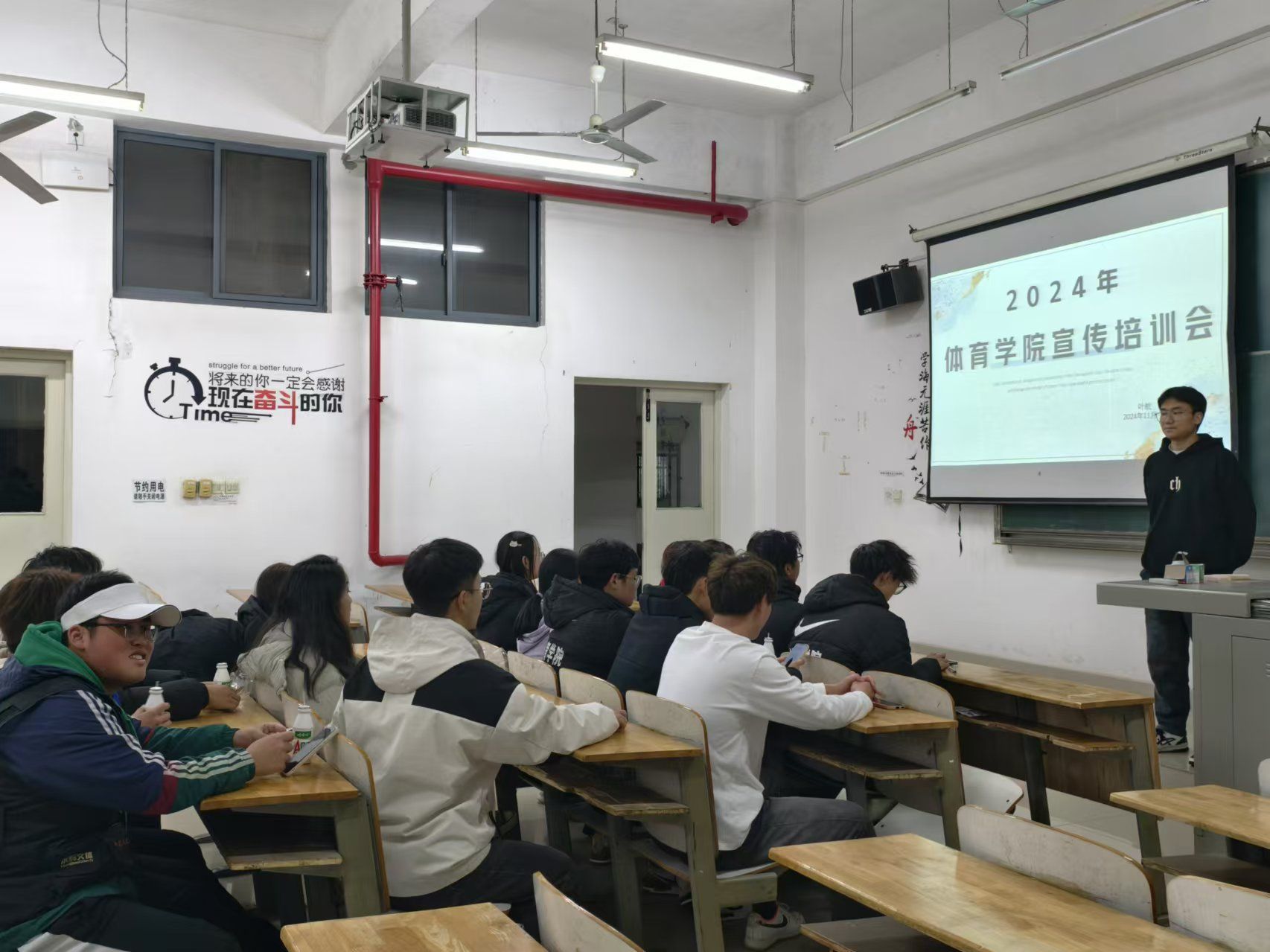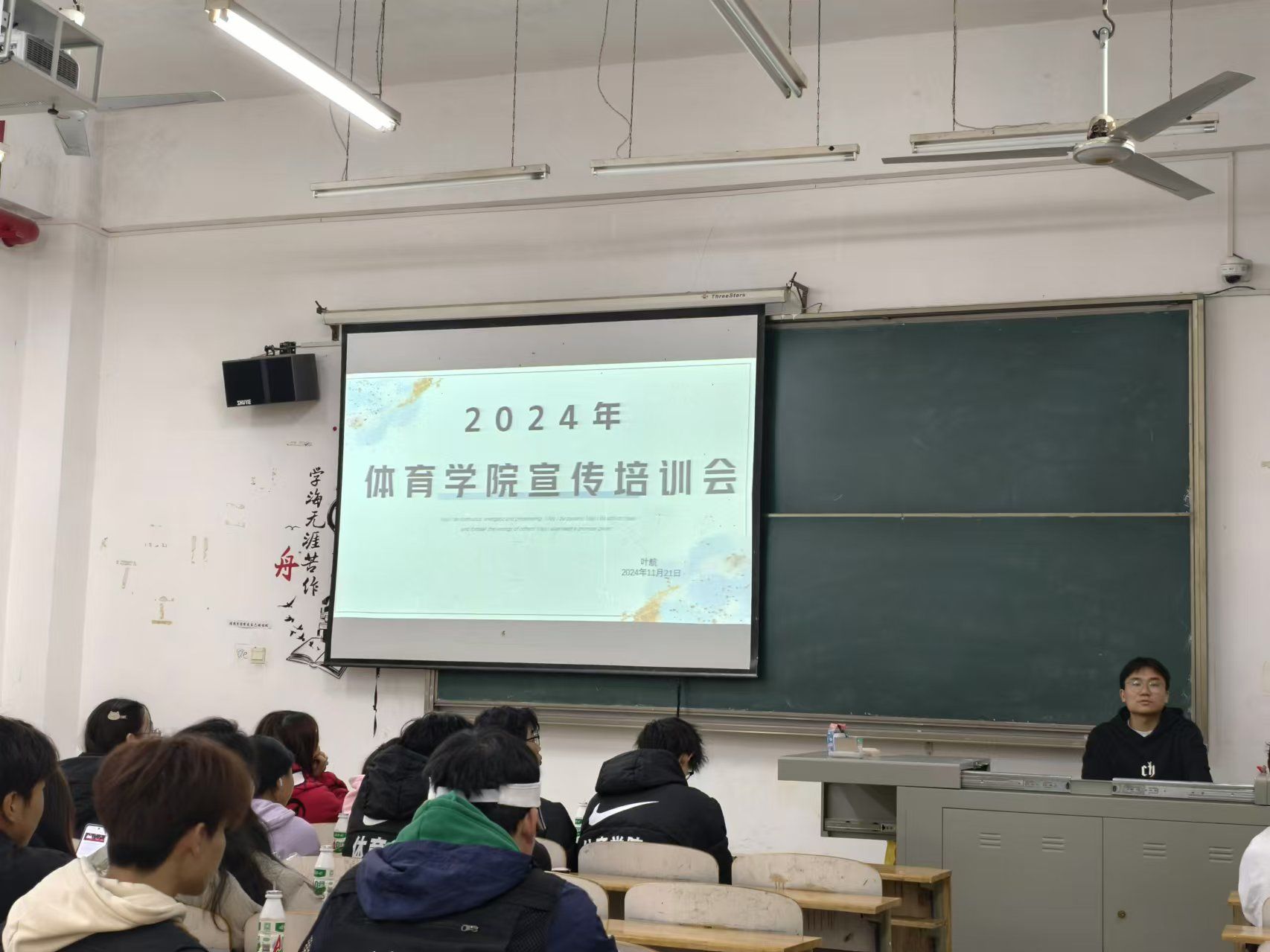 11月21号晚上六点半,体育学院宣传部在教学楼3教107举办了体院宣传部培训会。此次会议由辅导员叶航组织,宣传部部长王晶,副部长吴咏兵协助完成,全体宣传部成员参加,会议旨在促进全体人员的相互交流认识,以及对近期宣传工作中存在的问题进行指出,以便日后更好进行宣传工作。