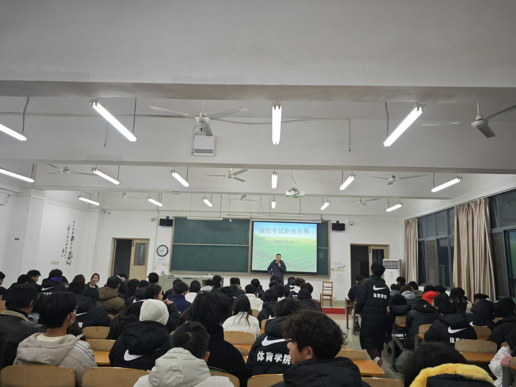 2024年12月29号19点,体育学院的晚点评活动准时拉开帷幕。此次活动以“诚信应考”为主题,由体育学院团总支书记李连国担任主讲人,旨在引导学生树立正确的考试态度,营造良好的考试氛围。