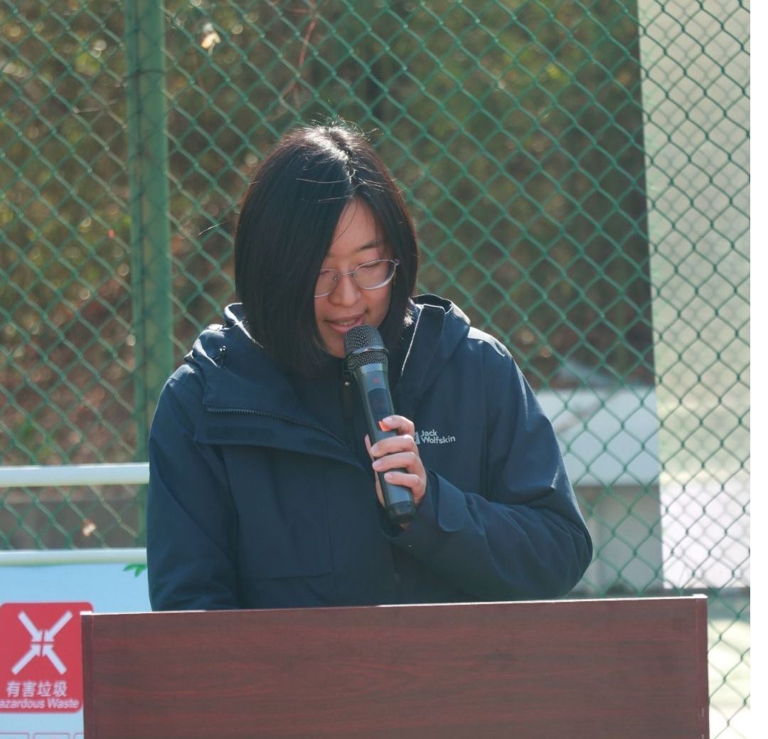 校团委书记潘晶随后发言,表达了学校对活动的高度重视。潘晶表示体育学院积极号召青年学生成为环保先锋,成立志愿服务队,积极践行志愿服务理念,希望主办方能提供相关的支持措施:一是希望主办方提供专业培训资源,让志愿者成为垃圾分类宣传者与实践者;二是学校将全力支持,组织多样化实践活动,让同学们在行动中体会环保乐趣与意义。