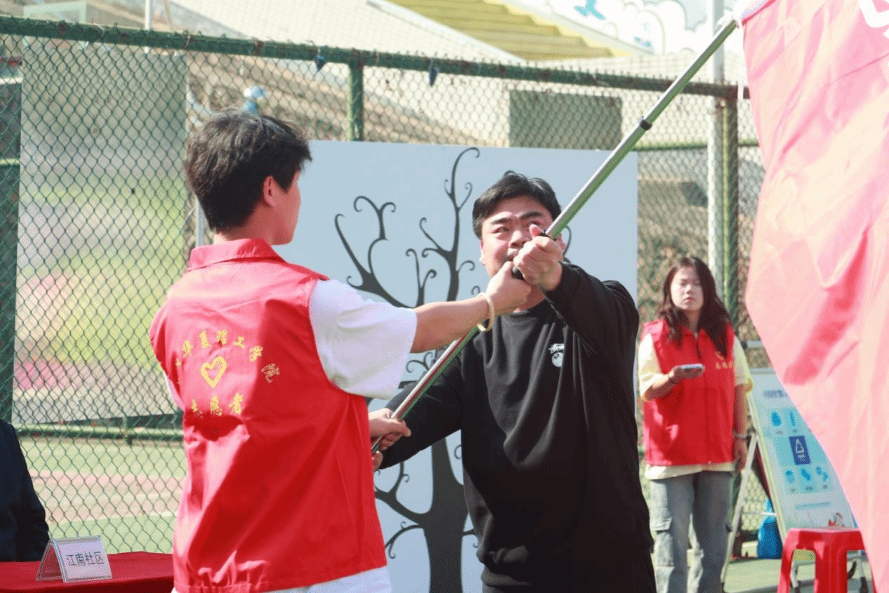 随后,授旗仪式举行,主办方代表向志愿服务队授旗,标志着志愿服务队正式成立。活动正式开展后,同学们积极参与。种植“垃圾分类公益树”活动中,同学们用废旧物品换取便利贴,写下对垃圾分类的感悟,汇聚成充满生机的“公益树”。垃圾分类问答小游戏现场气氛热烈,同学们踊跃答题,获胜者获得环保笔记本、可降解塑料袋等小奖品。套圈游戏也吸引了众多同学参与。