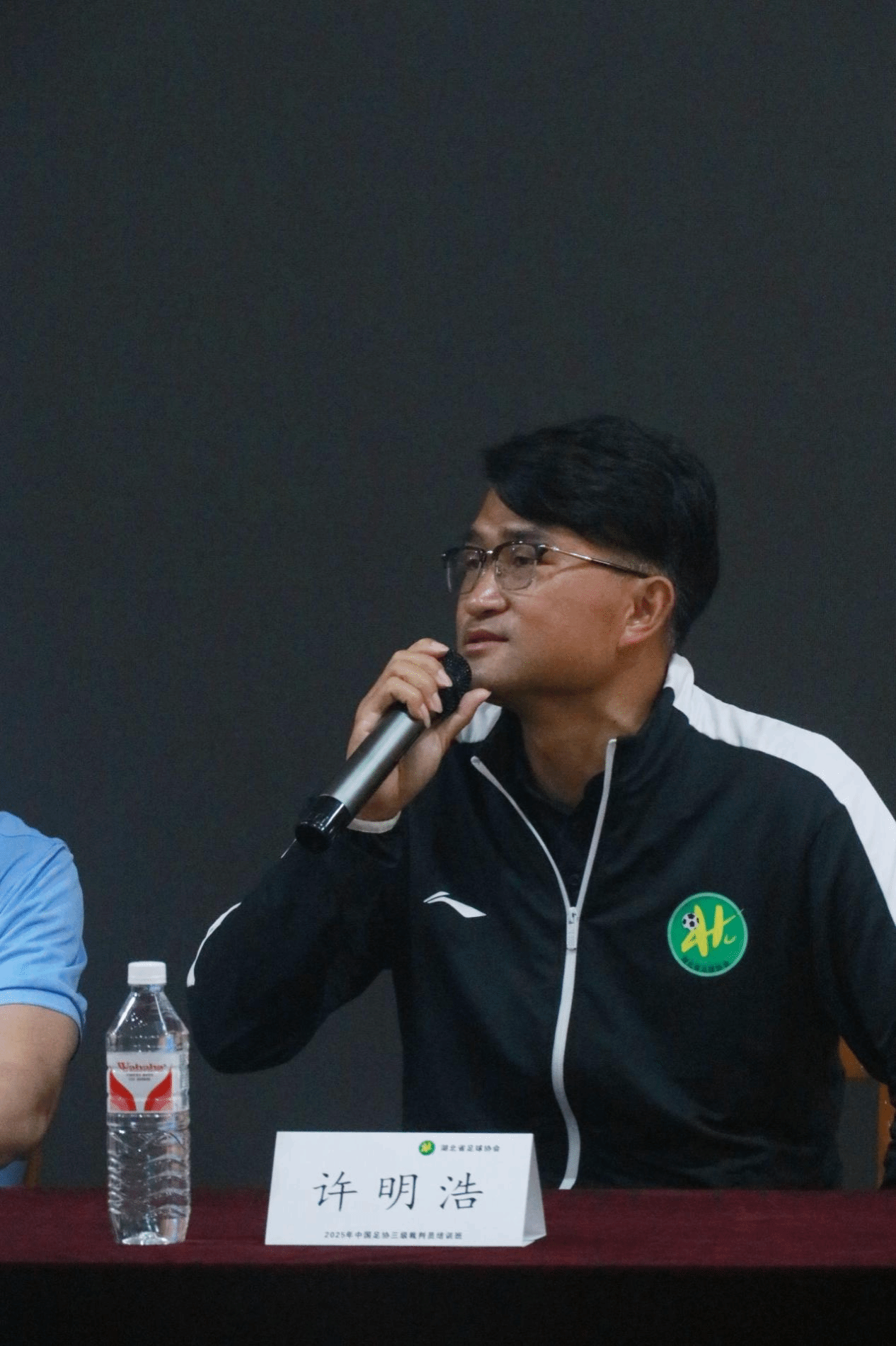 指导讲师徐明浩在仪式上分享了自己丰富的执裁经验,其中他指出,裁判员是足球比赛公平公正的守护者,希望学员们认真学习规则、锤炼技能,培养良好的职业道德,未来在各级赛事中展现专业水准。他的授课与指导将为学员们带来宝贵的学习资源。