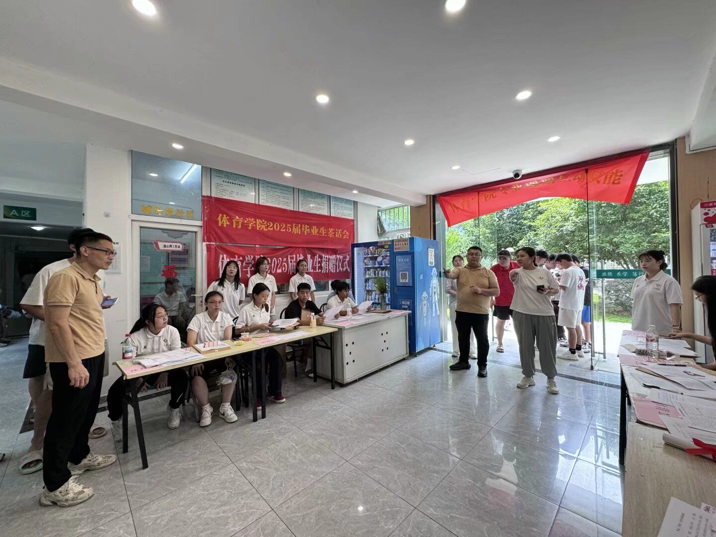 2025年6月18日,体育学院在七号楼一楼辅导员社区有序开展毕业生离校工作,体育学院院长刘涛,党总支副书记毛峥毅,学工办主任陈世益,辅导员李连国、臧守相、叶航共同参与了此次意义非凡的活动。