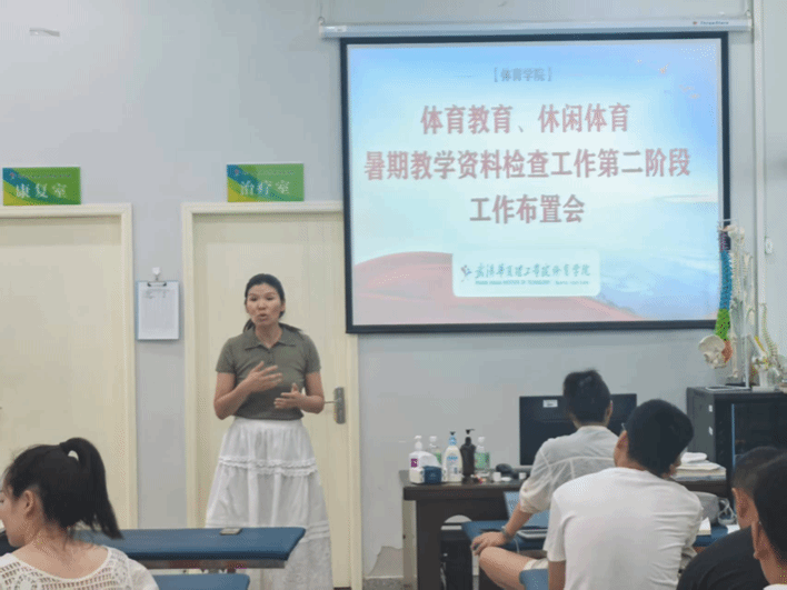 体育教育系主任宁梦茹和实习实训中心主任付炜分别就24-25学年的理论教学及实践教学材料重点检查内容进行了详细说明与明确分工,并对实验室管理材料的规范要求进行了阐述。同时,他们强调了材料的规范性与完整性,以及“五会”能力的体现与课程思政内容的有机融合。