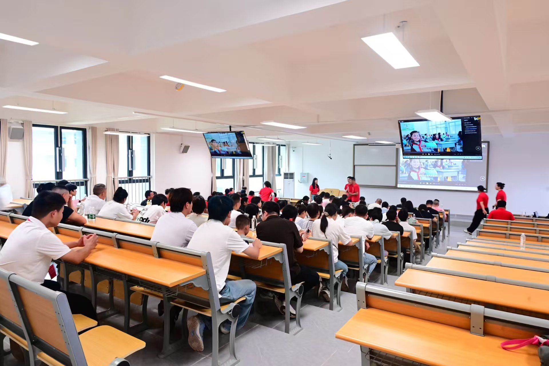 3.实践平台:多元场景赋能未来发展。学院依托全实木体育馆、梁子湖赛艇基地、襄阳全民健身中心等优质硬件资源,搭建“校内实训+校外实战”双轨平台:校企合作覆盖当代文体、西班牙格拉纳达俱乐部等20余家单位,提供实习与就业机会;国际交流通过韩国国民大学交换项目、意大利帕尔马青训营等活动,拓宽学生全球化视野。