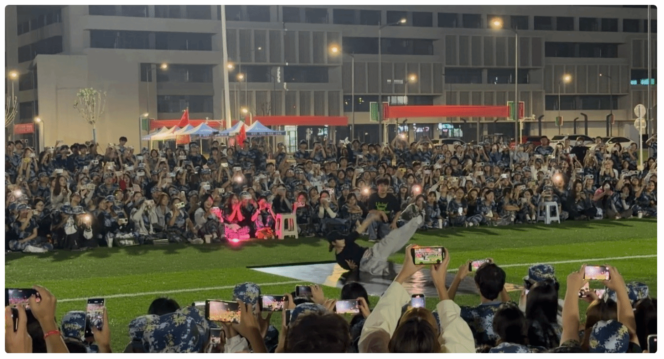 休息间隙,各连队还开展了拉歌比赛、才艺展示等活动,迷彩服方阵中不时响起嘹亮的歌声与笑声,既缓解了训练疲劳,也增进了同学间的友谊与集体凝聚力,大二的学姐学长也为军训表演了精彩的节目,为学弟学姐打气加油!