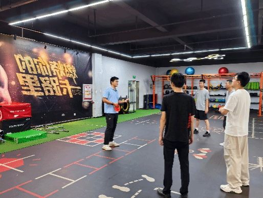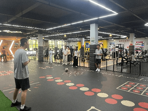 下午,磨课地点转至健身房,技术课打磨以“技能训练 + 精神培育”为核心,涵盖足球、田径、健康体适能三大板块。小组成员现场开展教学演示,将思政元素融入每一个技术动作的讲解中:汤昕宇老师示范足球运球变向技术时,不仅拆解动作要领,更强调“运球中的专注力”“面对防守时的应变能力”,引导学生领悟“专注坚持、勇于突破”的拼搏精神;周葆崧老师讲解田径专项热身方法时,结合“团队共同热身”的环节设计,渗透“互助协作、团结共进”的团队意识;汤昕宇老师在健康体适能核心力量训练的教学探讨中,特别提及“核心力量不仅支撑身体运动,更象征着面对困难时的‘核心定力’”,鼓励学生在训练中培养“不怕吃苦、持之以恒”的意志品质。