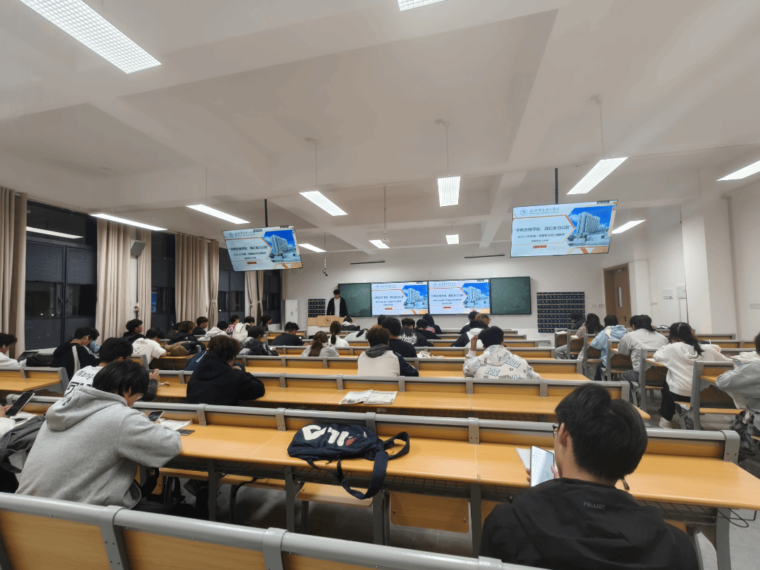 班会开始,班长围绕“合格评估与学校发展”展开讲解。他首先明确,合格评估是国家对新建本科学校办学质量的重要检验,核心目标是通过评估推动学校办学质量提升。随后,他结合“以评促建、以评促改、以评促管、评建结合、重在建设”的二十字方针,具体阐释了评估对学校师资队伍建设、课程建设、教学管理规范化等方面的推动作用,强调评估最终是为了保障教学质量、助力学生成长。在学校情况介绍环节,班长结合校园发展历程、学科专业特色及近期建设成果,鼓励同学们主动融入校园发展,以实际行动支持评估工作。