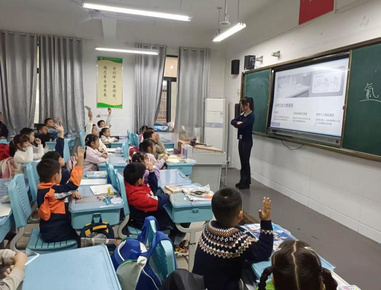第四天的降雨打乱了户外教学计划,考验接踵而至。黄月月迅速将课程调整为室内健康知识课,用“蔬菜摇滚”歌谣向低年级学生讲解营养金字塔。而在给高年级学生讲解运动损伤处理时,一度出现冷场,幸得同组同学及时介入,用“你做我猜”运动版游戏活跃了气氛。这次经历让她认识到,教师的应急能力与团队协作至关重要。