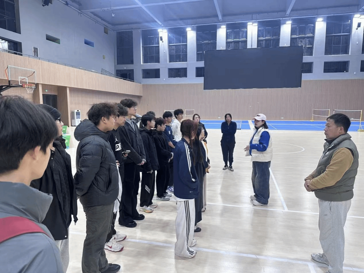 体测工作启动前,胡波老师和体育学院导员臧守相联合体育学院对志愿者进行了集中培训,内容涵盖岗位职责和操作规范,明确了各个岗位的分工合作。此外体育学院的志愿者们还针对科学热身和动作示范等专业内容进行专项指导,降低参赛同学们的运动损伤风险。