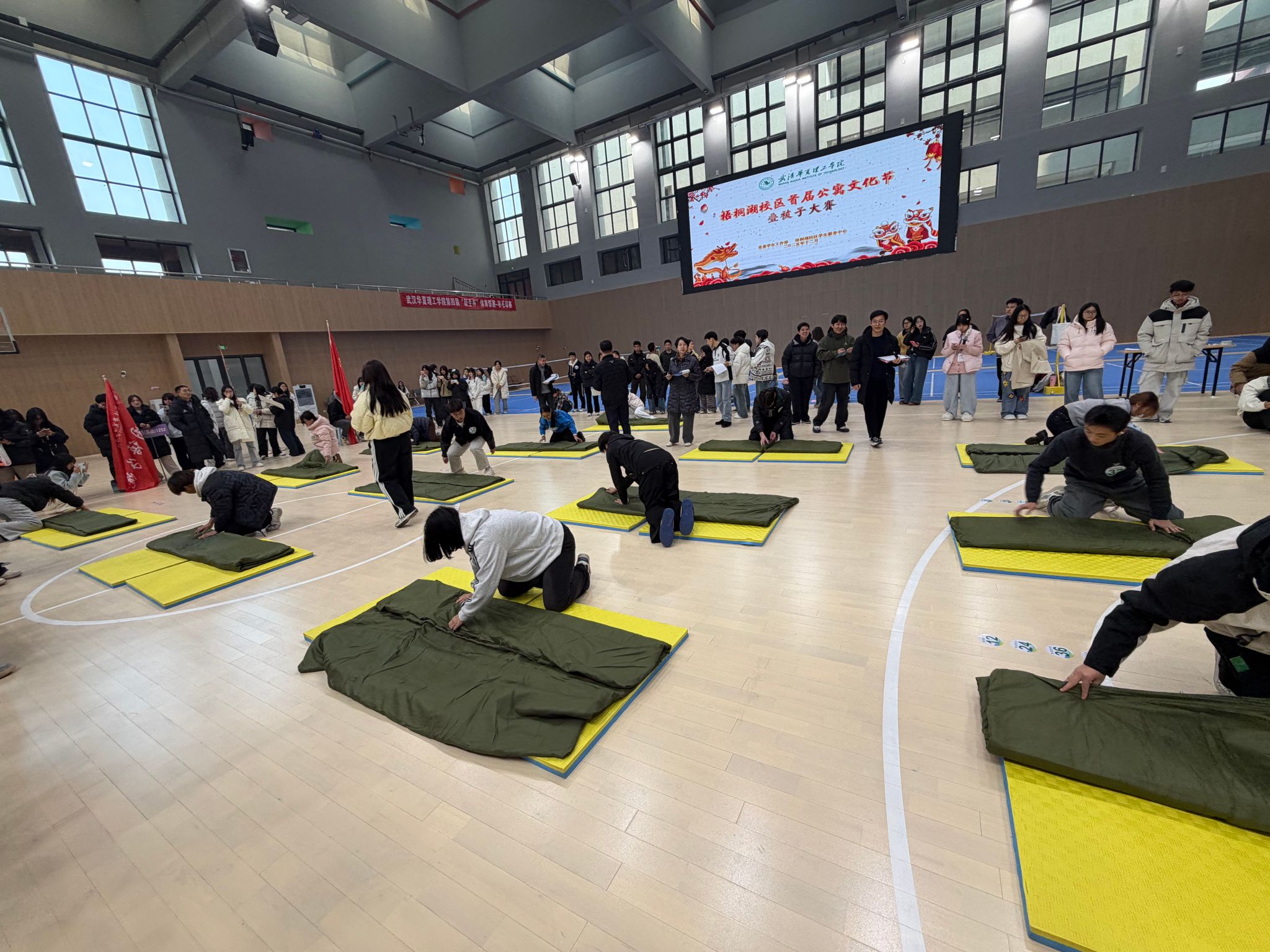 12月18日中午,beat365官方网站梧桐湖校区首届叠被子大赛在体育馆圆满举行。体育学院组织代表队积极参与,在比赛中展现了体育人特有的严谨作风与出色动手能力,获得现场师生的一致好评。