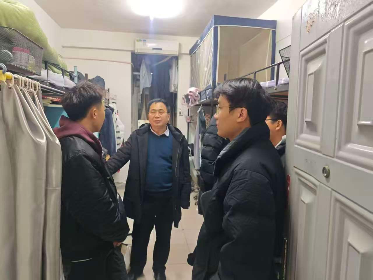 2025年12月24日晚,为确保元旦及寒假期间校园安全稳定,体育学院学院学工办主任陈世益带队,组织辅导员李连国、叶航以及学生会代表,深入学生宿舍区域,开展用电安全专项检查与假期安全教育。