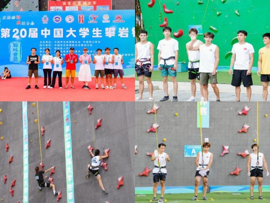 2024年7月30日至8月2日,由中国学生体育联合会、中国登山协会、中国学生体育联合会攀岩分会执行的第20届中国大学生攀岩锦标赛在山东郓城圆满结束。比赛设甲A组(普通高校组)、甲B组(高职高专组)、乙组(体育院系组)、丙组(高水平组);分男女难度赛、攀石赛、速度赛、两项全能赛等赛项,共有388名运动员参赛。