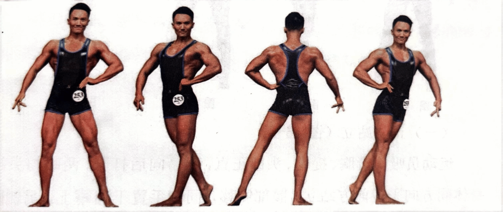 (二)全身肌肉发展均衡,左右对称、前后对应各部位肌肉张弛有度,紧致有型、饱满,轮廓清晰、美观。