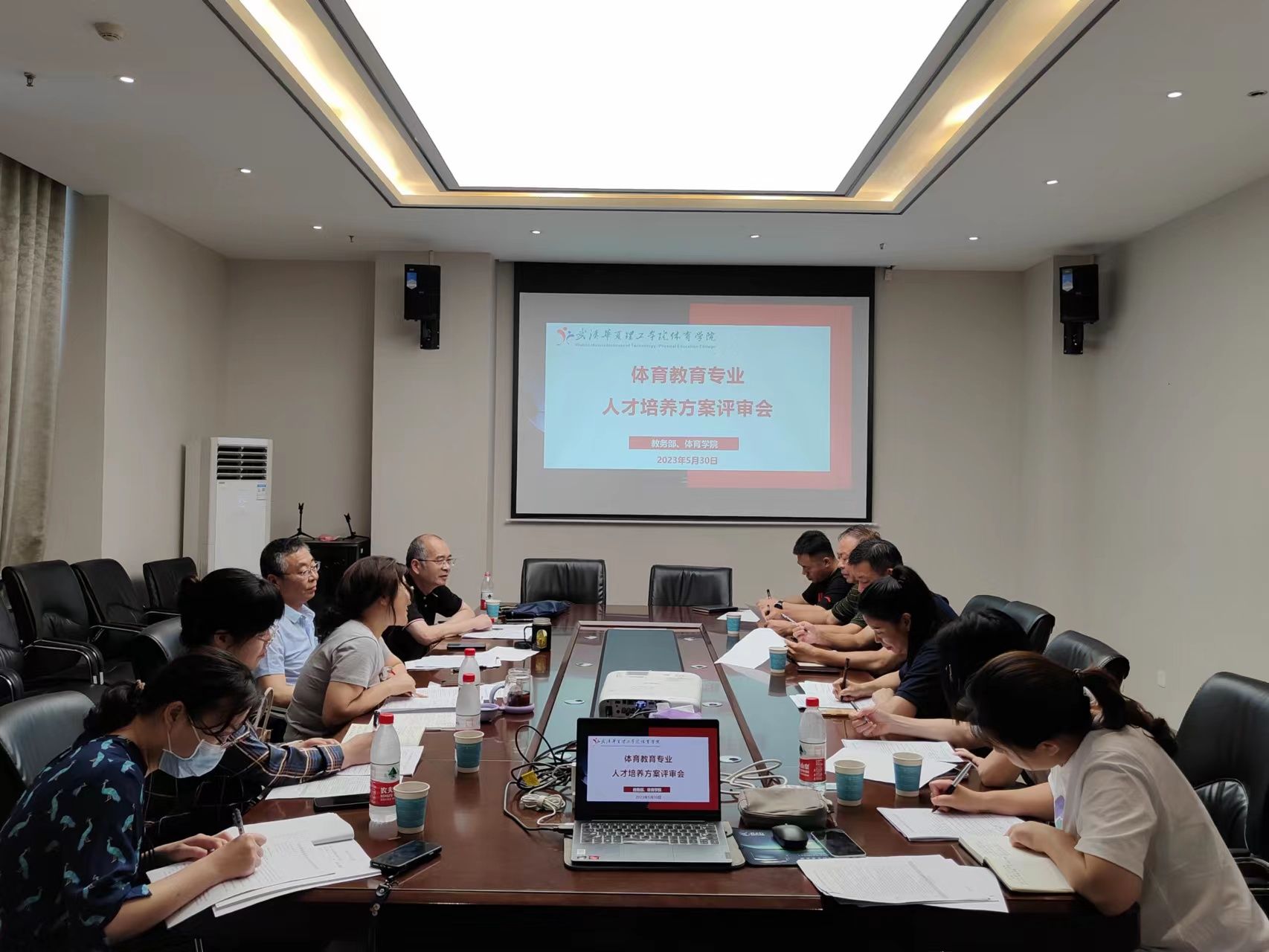 为进一步完善体育教育专业人才培养方案,明确课程体系、彰显专业特色,在教务部的组织下,5月30日下午在体育馆二楼会议室召开体育教育专业人才培养方案评审会。会议邀请副校长丁成忠,党委副书记、副校长李海民,校长助理、教务部部长李猜,教务部副部长赫桂梅,体育学院责任教授刘同员、院长刘涛、副院长赵燕为评审专家。体育学院副院长吴飞就人培方案设置进行汇报,教务部教学建设与研究中心主任陆晓岚,体育学院党总支书记关宏达、教学行政办主任肖青列席参会。