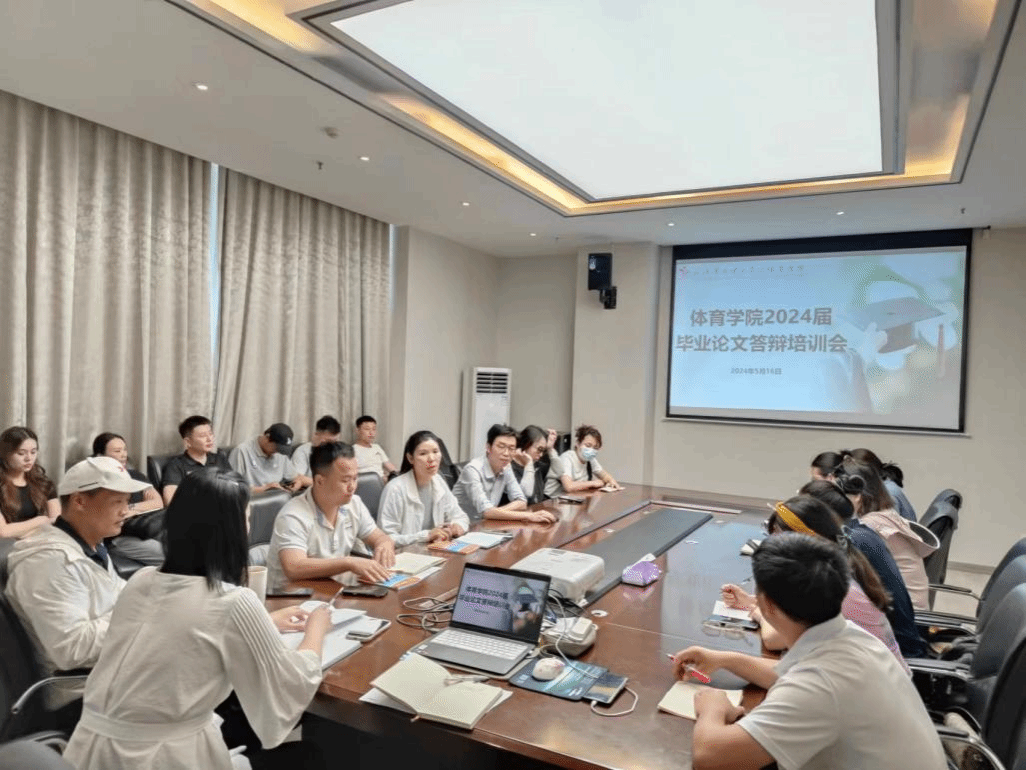 为进一步规范毕业论文答辩工作流程,确保毕业论文答辩工作有序、顺利开展,体育学院于2024年5月16日在体育馆二楼会议室召开毕业论文答辩培训会。参会人员有体育学院党总支书记毛峥毅,副院长吴飞,教学行政办教秘刘颖及全体评审老师和答辩秘书,本次会议由体育学院实训中心主任付炜主持。
