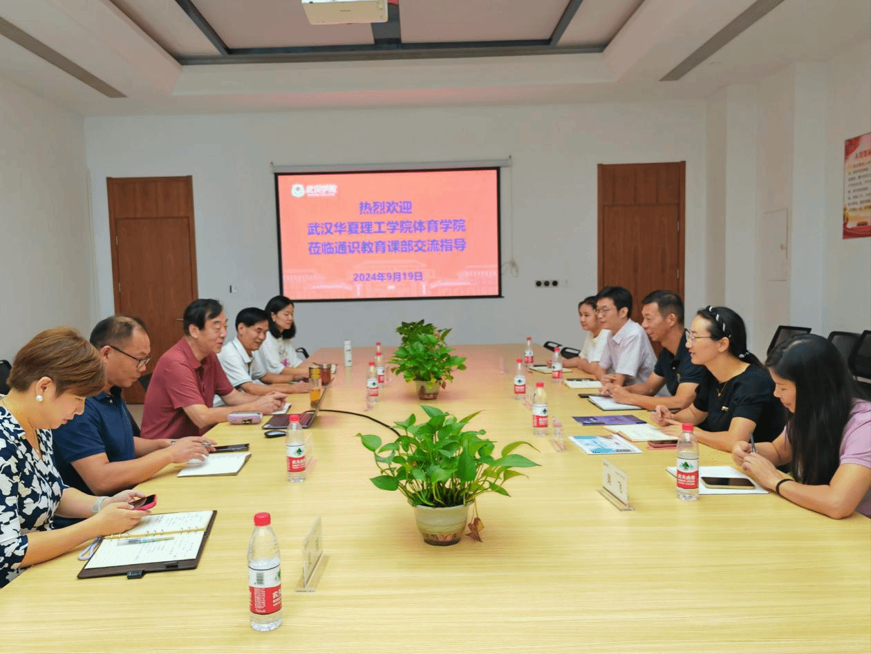 2024年9月19日上午10时,体育学院院长刘涛带领学院党总支书记兼行政副院长毛峥毅,副院长赵燕、吴飞,教学行政办主任肖青一行4人至武汉学院通识教育课部调研,学习其参与本科教育教学合格评估的丰富经验,并就师资队伍建设、实习基地建设等专业建设及教学管理等工作进行交流。
