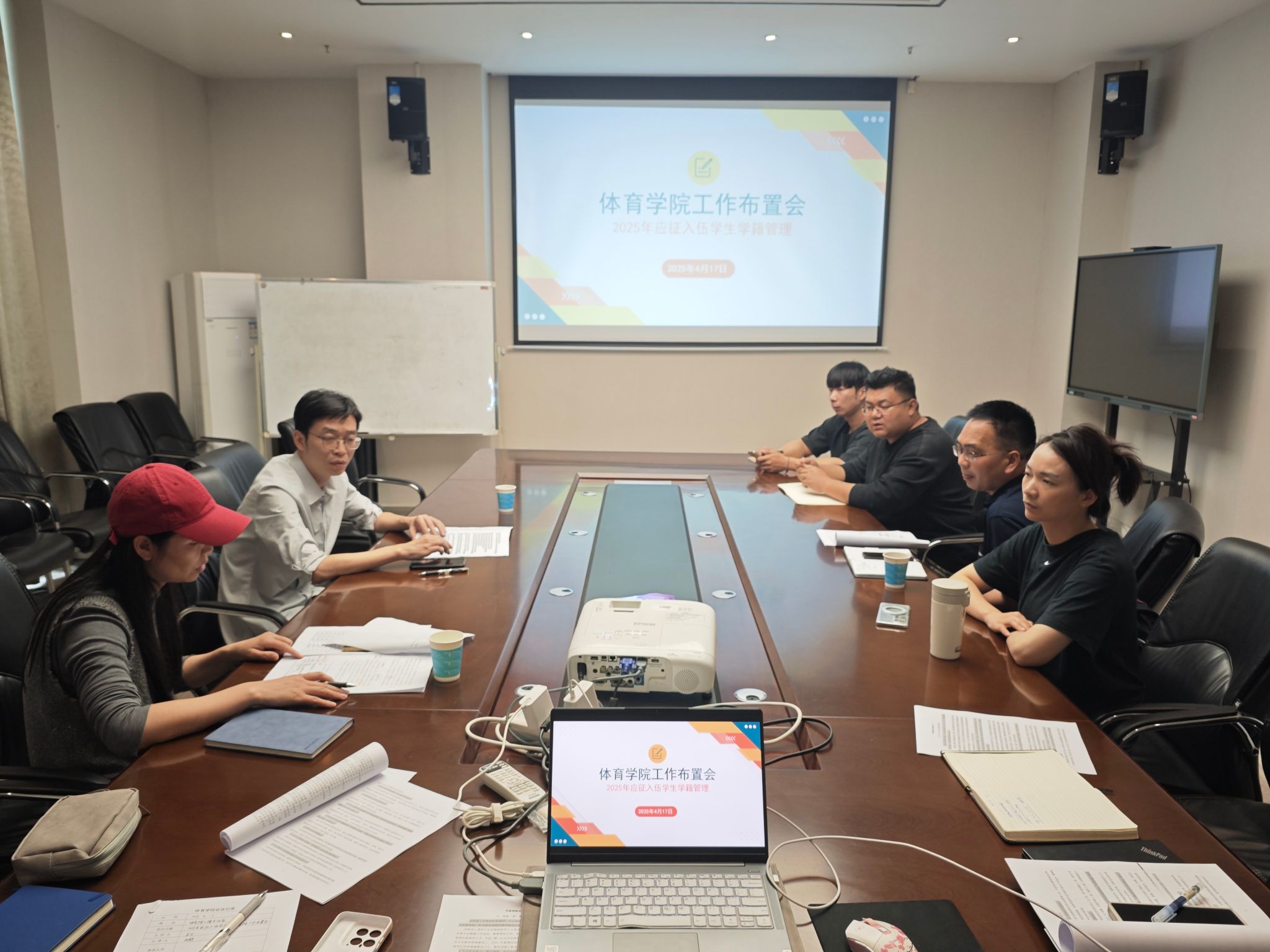 为贯彻落实学校《关于做好2025年春季应征入伍学生学籍管理的通知》要求,确保参军学生学籍管理工作有序开展,体育学院于4月17日在体育馆二楼召开2025年应征入伍学生学籍管理工作布置会。教学副院长、党总支副书记、毕业设计指导教师、辅导员及教学办、学工办相关工作人员参加会议。