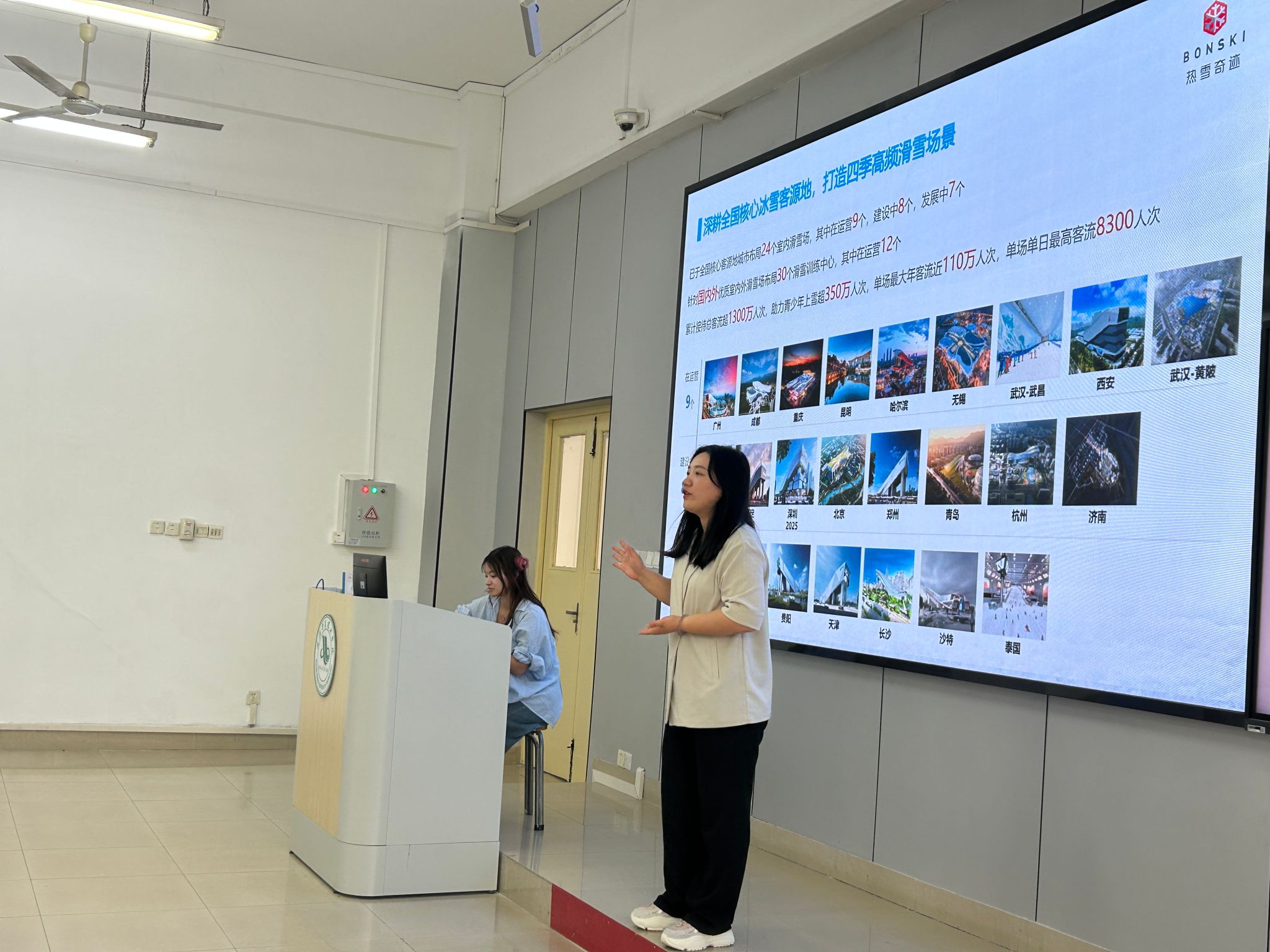 随后,毛峥毅副书记对热雪奇迹公司表示感谢,强调校企合作的重要性,希望深化合作,为学生创造更多实践与就业机会。此外,热雪奇迹人事经理曹思维围绕高山滑雪课程展开详细介绍,从课程内容、教学方法、安全保障等多维度阐述,结合市场对滑雪专业人才的需求现状,分析该领域的发展前景与就业机会,为学生职业规划提供参考。