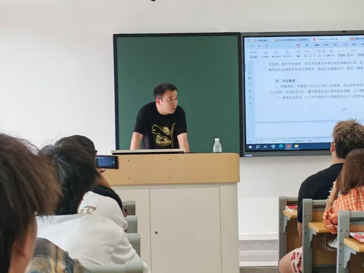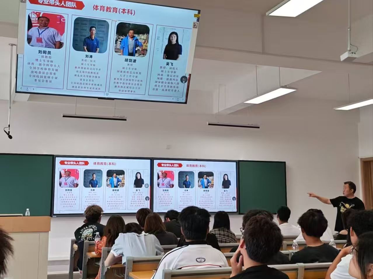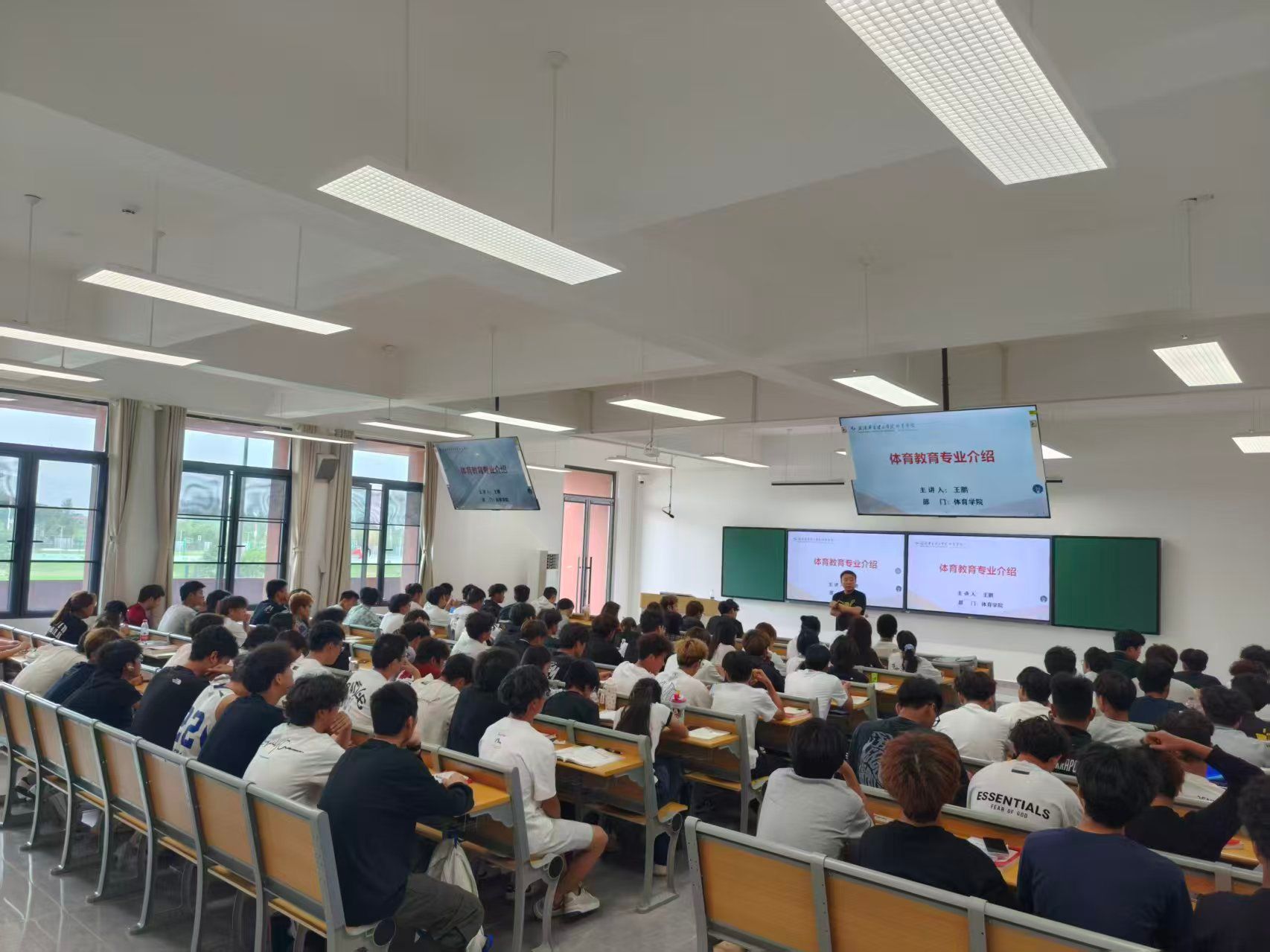 2025年9月29日上午,梧桐湖校区,体育学院2025级体育教育专业新生齐聚教学楼C207,聆听了体育教育专业入门讲座。本次讲座由体育教育系副主任王鹏主讲,旨在帮助新生深入了解专业内涵、明确学习目标、规划大学生涯,为即将开启的大学奠定坚实基础。