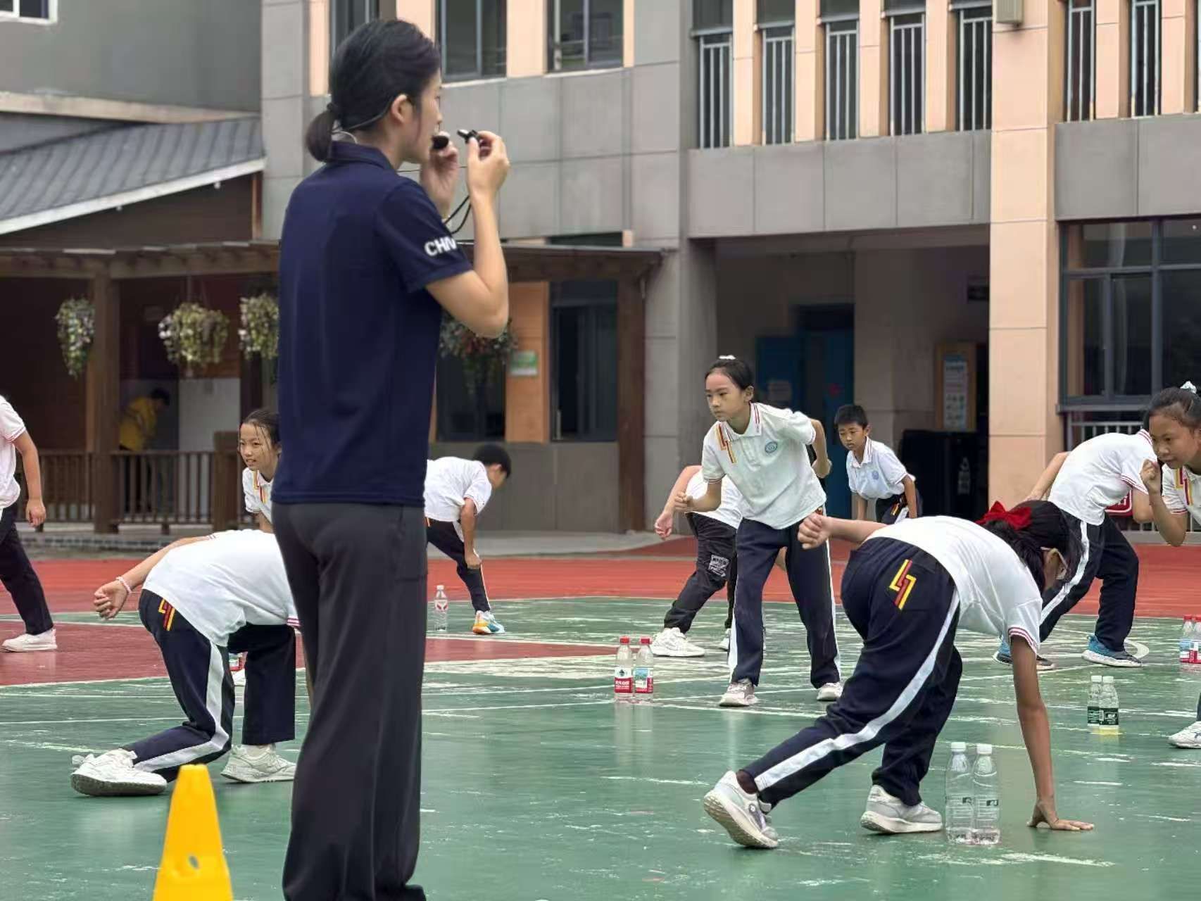 徐怡君老师执教水平二(四年级)《快速跑及体能》课程,围绕“起跑迅速、步频快速”这一教学重点,巧妙运用矿泉水瓶这一辅助器材,将快速跑技术拆解为可感知、可操作的学习模块。课堂贯穿“学练赛一体化”设计思路,从个人技术练习过渡到小组接力对抗,使学生在真实运动场景中发展速度与反应能力,落实“运动能力、健康行为、体育品德”三大核心素养的融合培养。