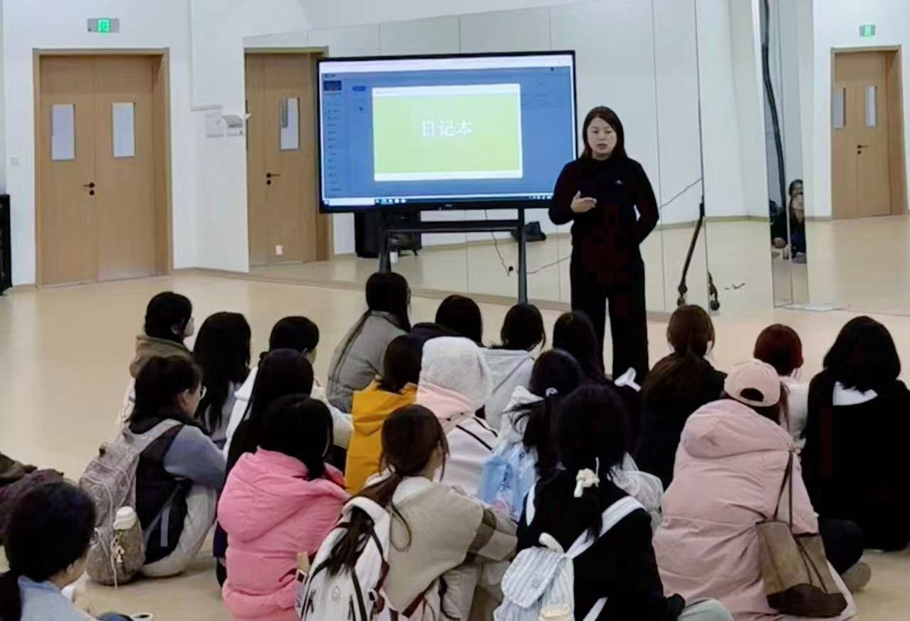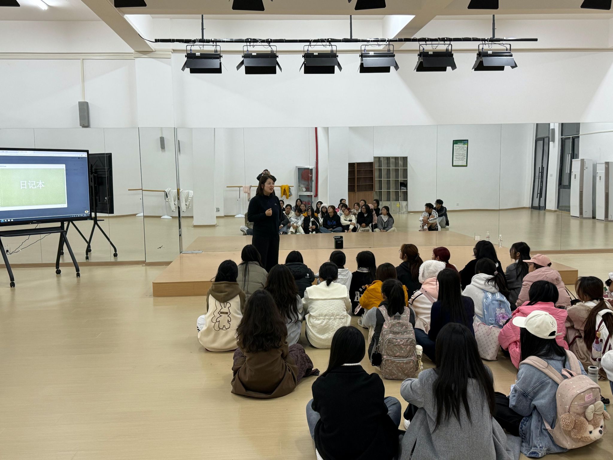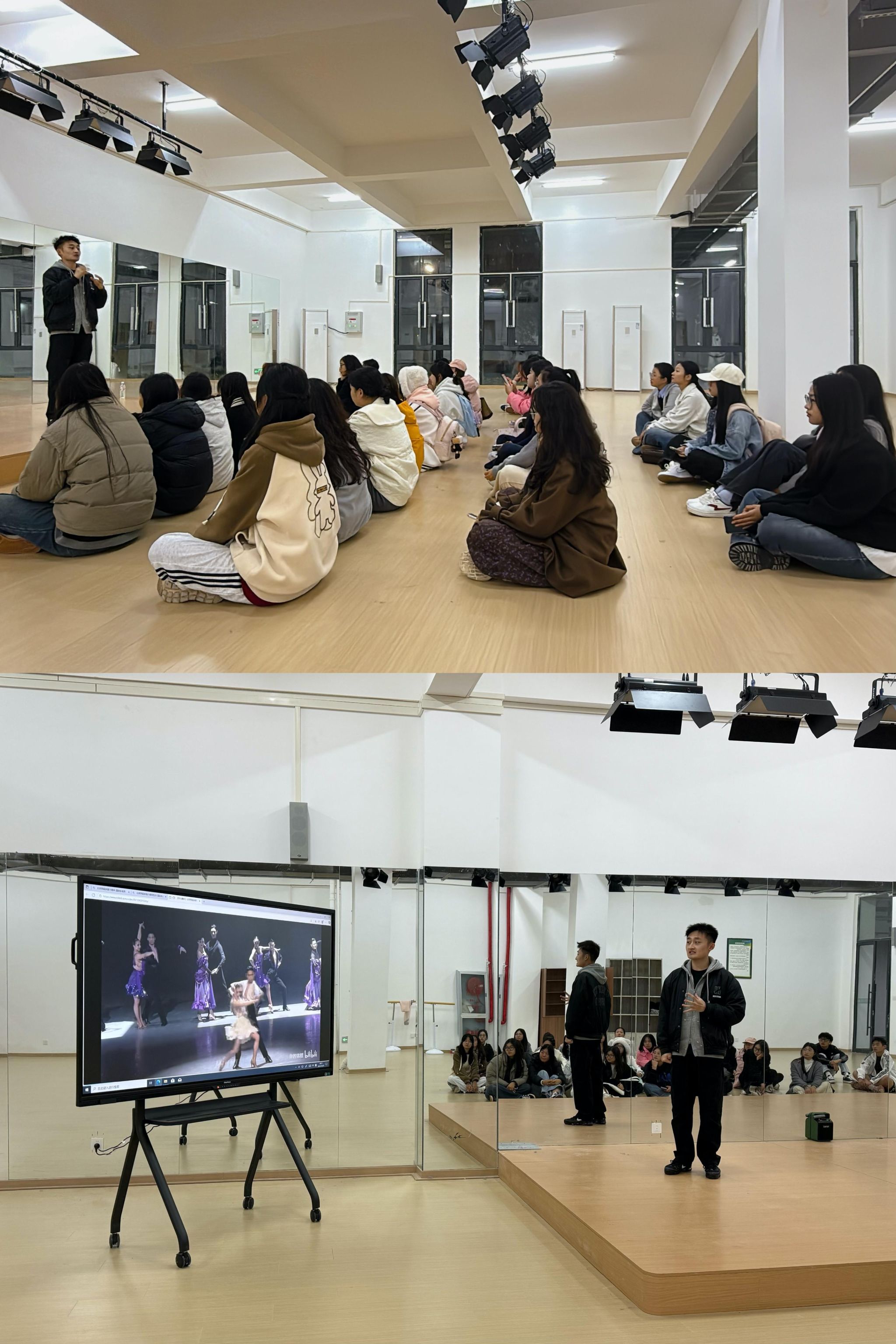 活动伊始,国标舞俱乐部青年教师李林嵘围绕“国标舞通识课的课程价值与内容体系”展开讲解,从课程设置(如基础舞步教学、舞种文化解析、体能适配训练等)、考核方式到学分认定,全方位拆解课程细节,帮助新生清晰掌握选课核心信息。随后,通过视频展示了国标舞经典舞种的基础动作,并播放往届学生课程学习成果视频,让新生直观感受到国标舞通识课并非“专业门槛高”,而是兼顾趣味性与实用性的通识教育内容,打消了部分新生对“零基础难入门”的顾虑。