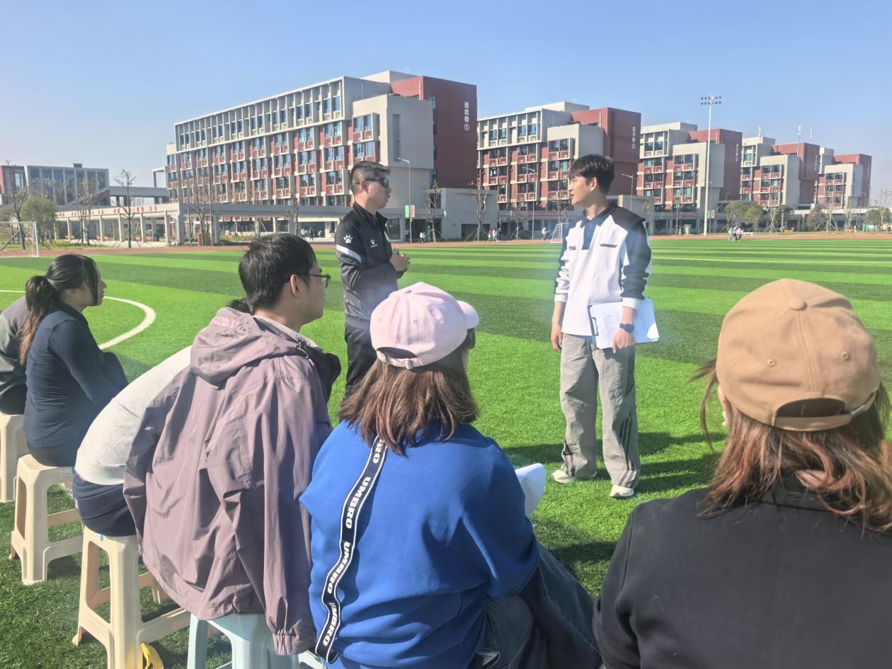 课后,足球项目课程组负责人陈振老师组织评课交流,他高度肯定朱祚老师的充分准备、科学设计与有序组织,尤其赞许“技术分层保规范、游戏设计提热情”的精研亮点。同时,就示范角度、练习密度及教学技能等细节提出改进建议。
