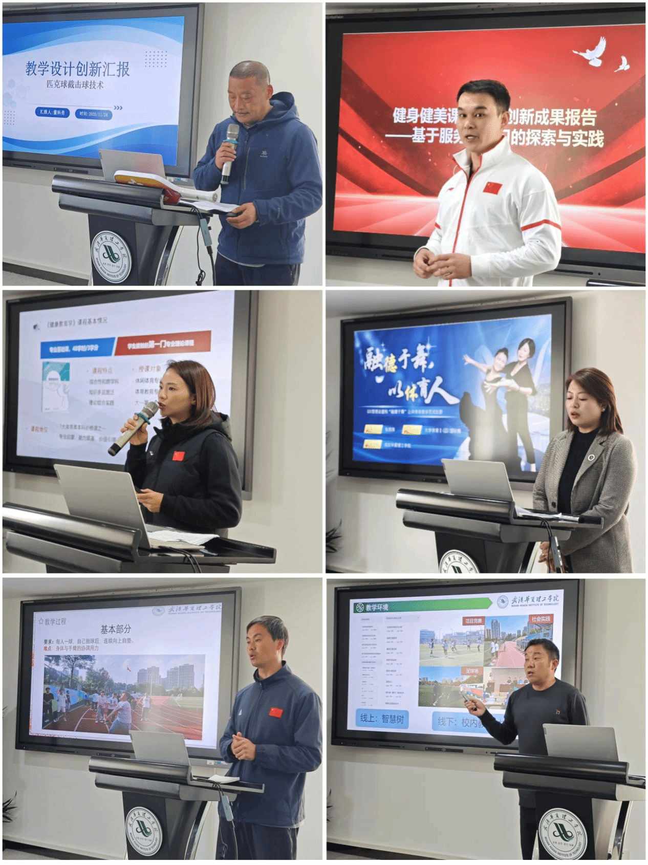 本次赛事采用“线上材料评审+线下说课展示”相结合的模式,构建了“教学设计-课堂实施-创新特色-思政融合”四位一体的评价体系。比赛过程中,参赛教师们充分展现出扎实的专业素养和创新的教学理念。参赛教师结合体育学科特点,运用多样化教学方法,如小组竞赛、情景模拟、信息化教学工具等,激发学生的学习兴趣和积极性,引导学生主动参与体育学习与锻炼,同时巧妙融入课程思政元素,培养学生的团队协作精神、坚韧意志和体育道德,实现了“技能传授”与“价值引领”的同频共振。