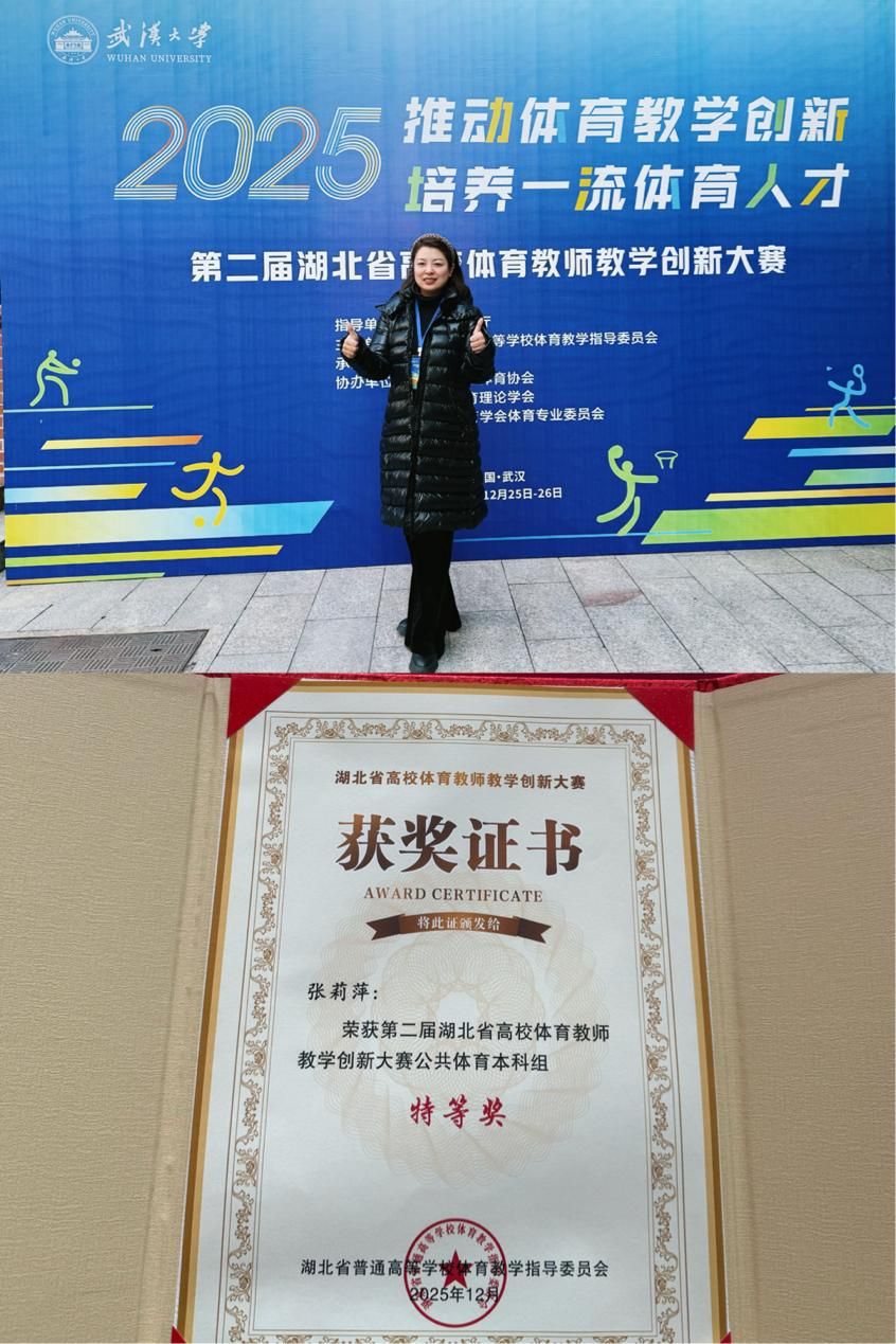 beat365官方网站体育学院在此次赛事中表现格外亮眼,成为湖北省唯一一所三位教师同时晋级省赛决赛的高校。在强手如林的竞争中,学校教师凭借过硬的专业素养与创新性的教学实践创下佳绩。公共体育课部张莉萍老师作为全省唯一的民办院校代表,从众多省属重点高校、公办本科院校选手中突出重围,凭借扎实的教学功底与独具巧思的教学设计,斩获公共体育本科组特等奖,这份荣誉来之不易,充分彰显了学校体育教学的创新实力与育人成效。