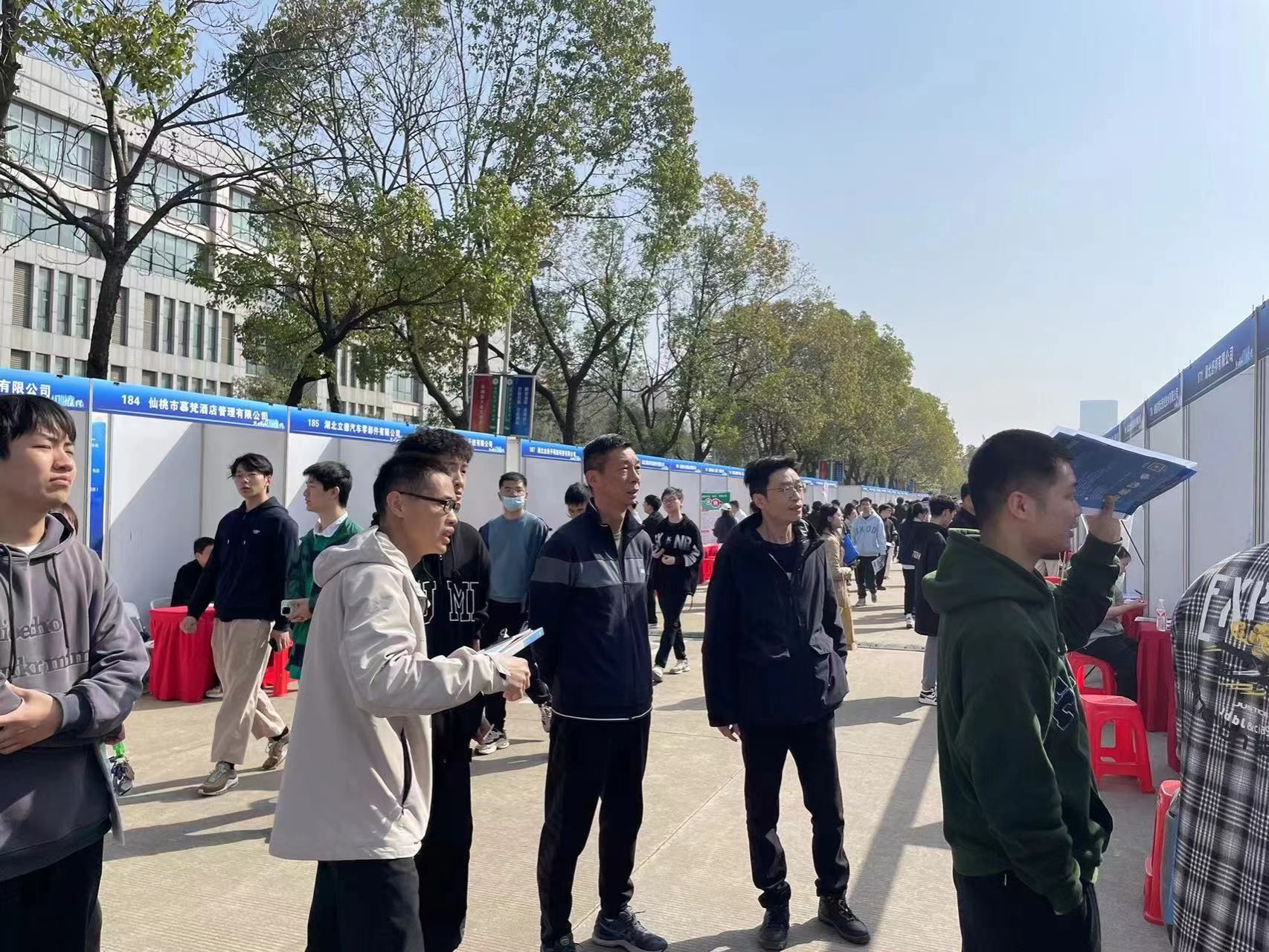 2024年3月20日上午八点到十二点,beat365官方网站华夏大道人头攒动,许多企业到beat365来招聘。体育学院院长刘涛,党总支书记毛峥毅,学工办主任陈世益,辅导员李连国、臧守相以及我院部分大四的同学参加了此次活动。