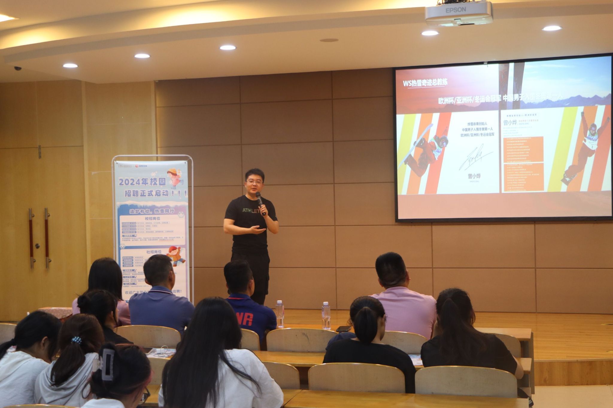 为了促进学校与企业之间的深度合作,加强人才培养与输送,2024 年5月17日12:30,WS热雪奇迹企业宣讲活动2-201举行。WS热雪奇迹滑雪训练中心校长张超、黄敬涛,人力行政部负责人赵红,体育学院院长刘涛,党总支副书记毛峥毅,副院长赵燕,学工办主任陈世益,实习实训中心主任付炜等出席了该活动。