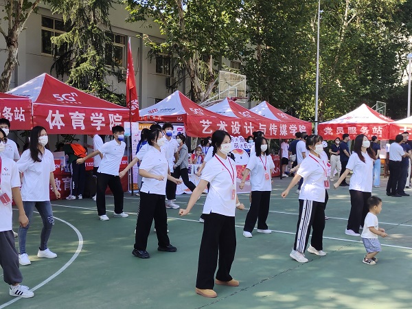 为了调节气氛和缓解志愿者们工作疲劳,体育学院在迎新接待点组织了一场快闪表演,在抖音等媒体上受到广泛关注,引起了众多人的点赞和喜爱。