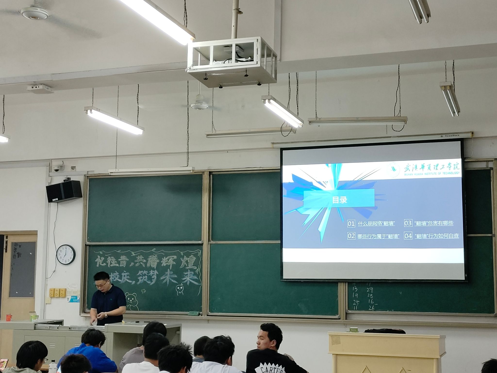 晚点评伊始,各级辅导员通过PPT直观的方式向同学们进行讲解,从“翻墙”的含义、行为、危害三个方面进行说明,同时告诉同学们如何自查。同学们对“翻墙行为有了深刻的认识”同时表明一定会遵守网络规则。随后,辅导员们带领全体同学参与了“星空班会”的答题,题目聚焦学生的心理问题,力求帮助学生在新时代健康成长。