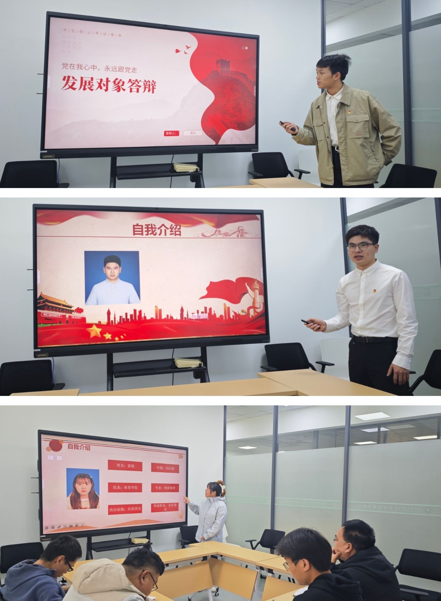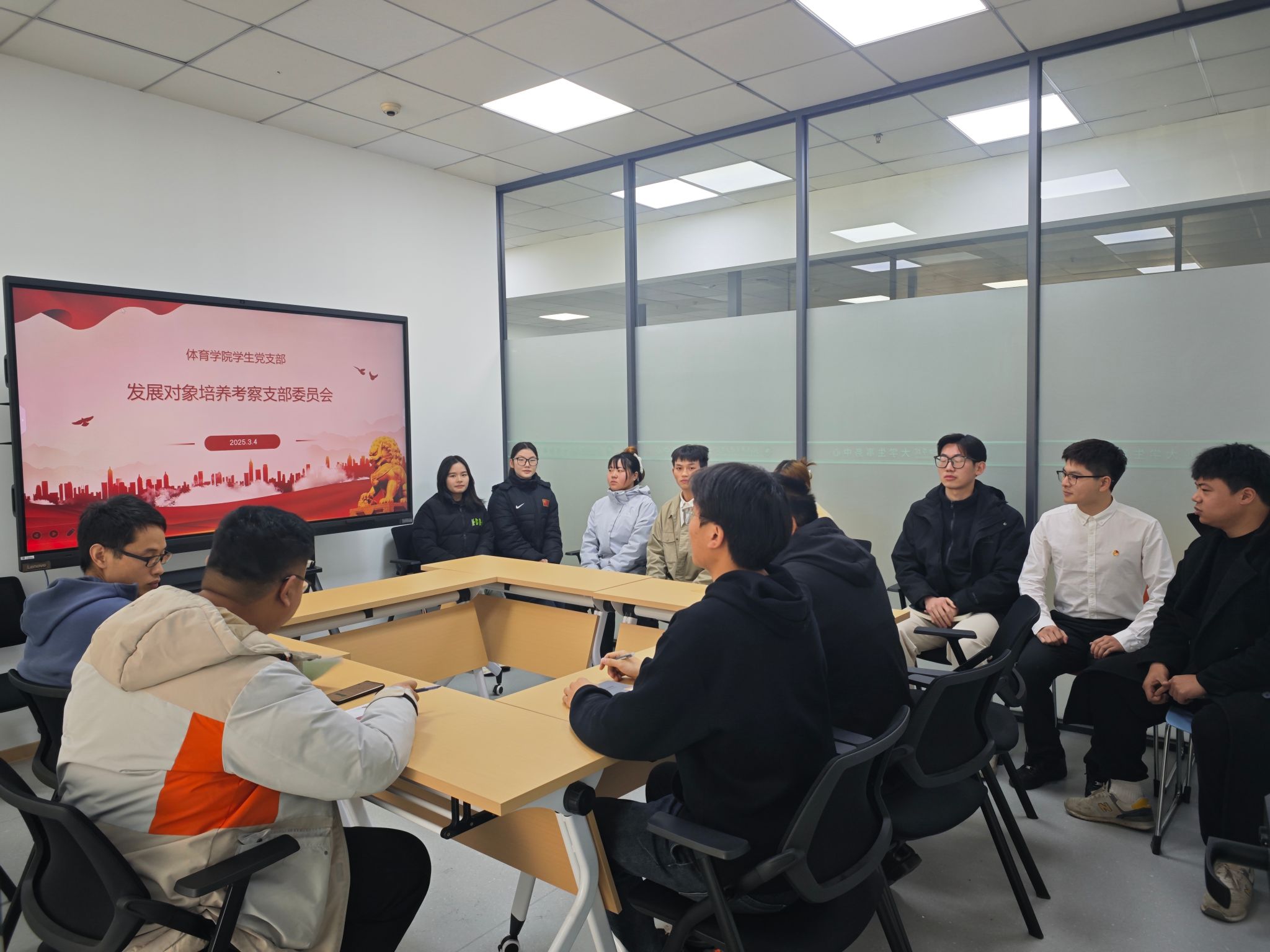 为加强党员队伍建设,为党组织注入新鲜血液,2025年3月10日中午12点,体育学院学生党支部对符合要求的优秀团员进行了全面考察。本次考察由学生党支部书记陈世益主持,支部委员臧守相、李连国、叶航共同参与。