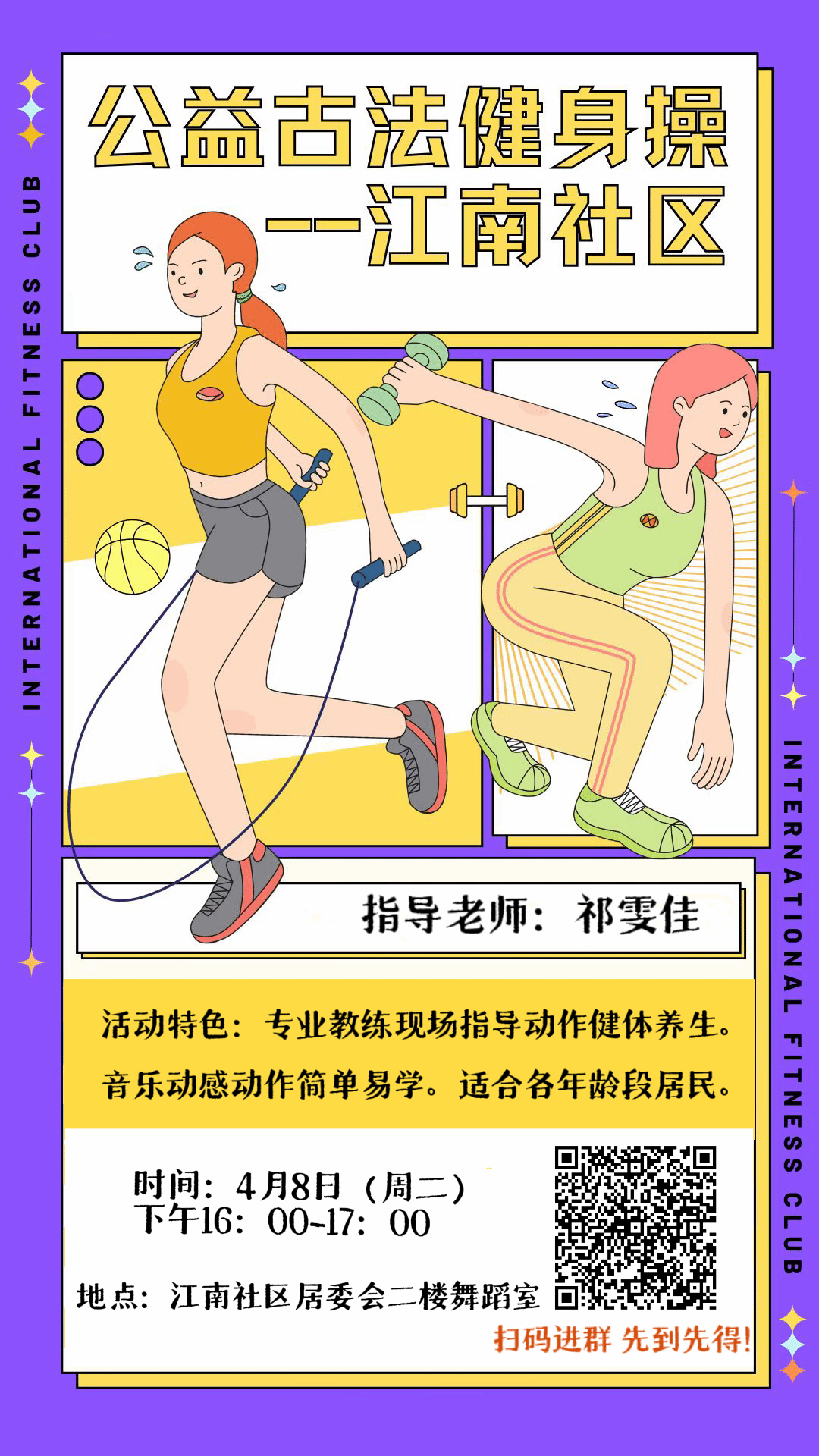 此次公益活动是体育学院在课程建设与社区服务融合道路上的一次大胆探索。学院精心挑选《健康教育学》、《时尚团操》、《健身健美》、《功能评估与理疗》等多门专业课程与江南社区深度对接,提供了有氧操、八段锦、瑜伽、徒手健身等多种体育课程,让居民们无需走出社区,就能享受到专业的体育教学与健康指导,学习到科学的健身方法,为自己和家人的健康生活增添一份保障。