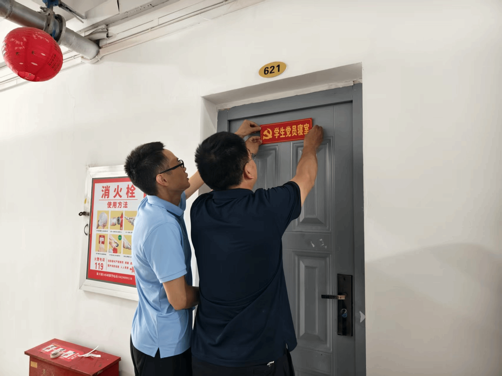 仪式上,毛峥毅为寝室代表授牌,并强调党员寝室不仅是一份荣誉,更是一份责任,要成为文明自律的标杆、服务同学的窗口。学生党员承诺将会树形象、作表率,将以实际行动践行承诺,从身边小事做起,用良好的生活习惯和道德风尚带动身边同学。随后,辅导员将“党员寝室”标牌贴于门上,鲜红的标牌与党员们的胸徽交相辉映,彰显着党员身份的庄重与使命。