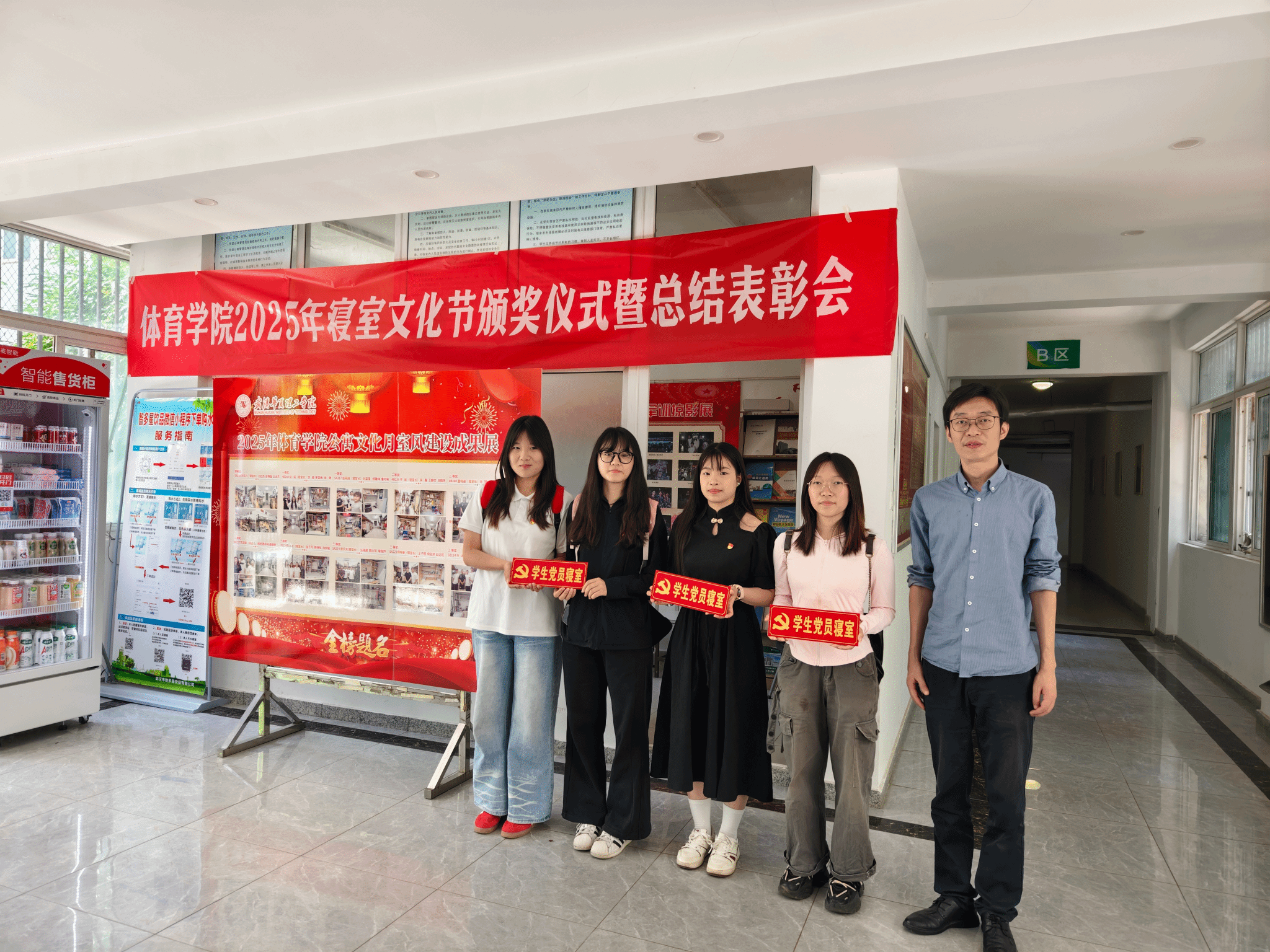 为深化学生党员教育管理,发挥党员先锋模范作用,5月12日中午12:20,体育学院在七号楼辅导员社区举行党员寝室授牌仪式。体育学院党总支书记毛峥毅、学工办主任陈世益,辅导员李连国、臧守相、叶航及学生党员代表参加活动。