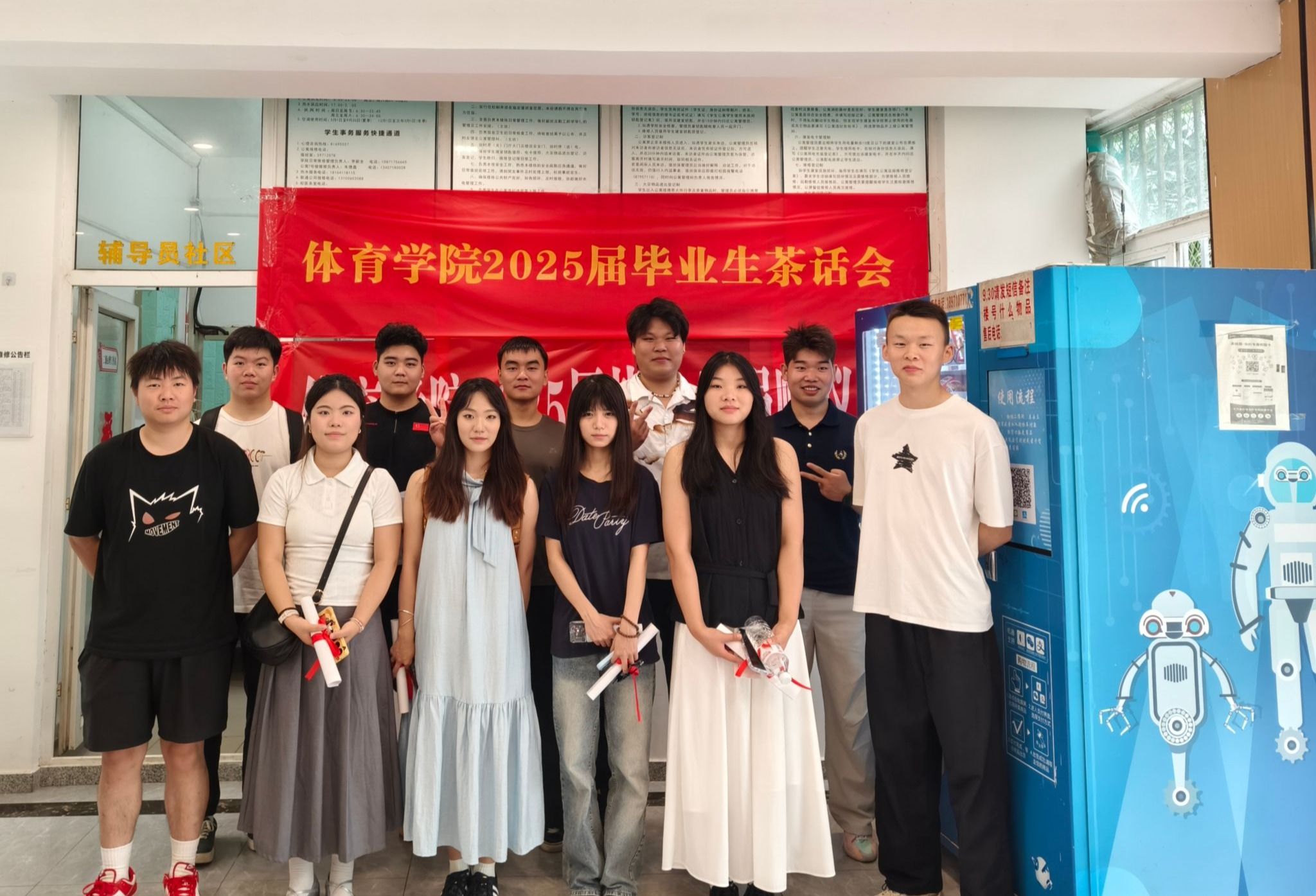 2025年6月18日上午9点,体育学院在7号楼辅导员社区成功举办了党员座谈会及毕业捐赠仪式。体育学院党总支副书记毛峥毅、学工办主任陈世益,辅导员李连国、臧守相以及学生党员代表共同参与了此次活动。