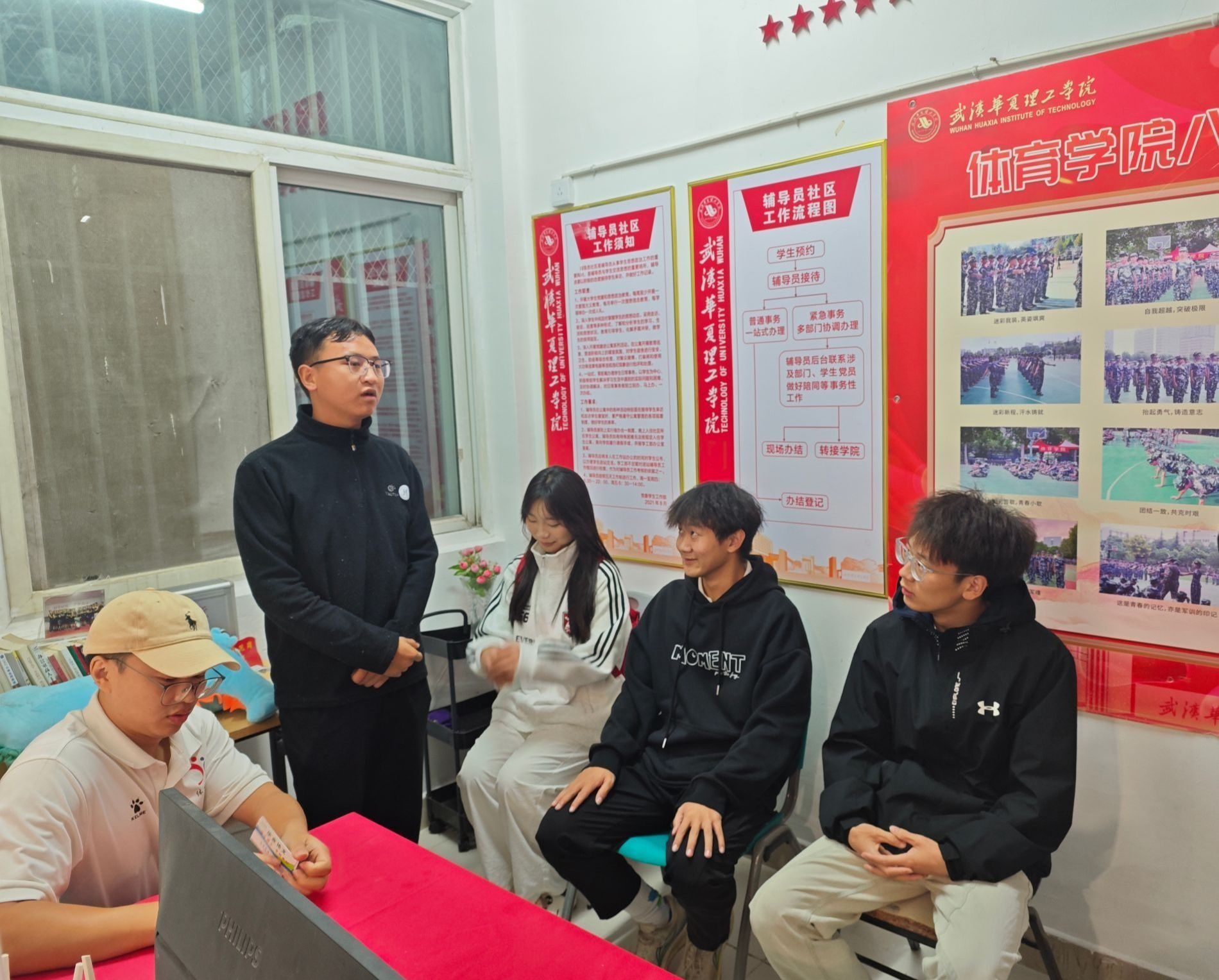 10月20日晚上8点30分,体育学院青年志愿者协会在七号楼辅导员社区组织召开扩招工作计划会议,出席本次会议的有辅导员李连国、青协各部门负责人,旨在弘扬志愿服务精神,壮大志愿者队伍。