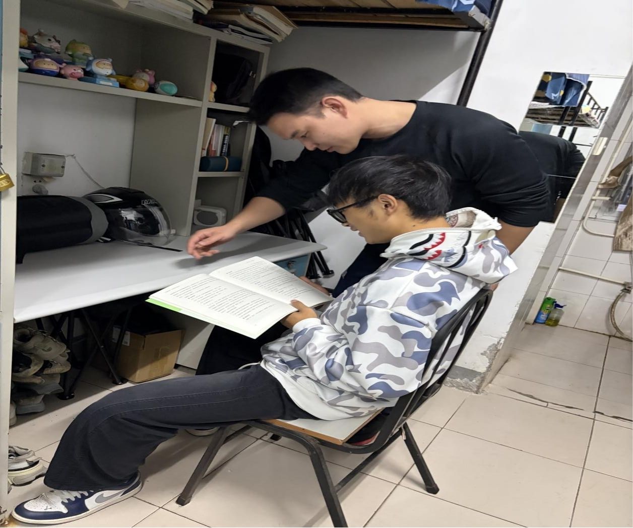 座谈会结束后,蒋春强老师随即走进学生宿舍,逐一查看内务整理、用电安全与生活环境。在宿舍里,他不仅仔细检查卫生死角,还与学生们亲切交谈,询问学习生活中的困惑与需求。看到学生在宿舍认真研读专业书籍,他俯身关切指导;面对宿舍的日常细节,他耐心叮嘱安全注意事项。这一系列举动,让学生们深切感受到班主任的关怀与责任。