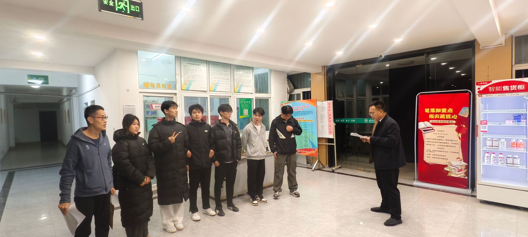 检查前,陈世益主任在辅导员社区对参与检查的学生骨干进行动员部署,明确检查重点与工作要求。检查过程中,检查组深入各寝室,逐一核查内务整理、电器使用、危险物品存放等情况:对内务杂乱的寝室现场指出问题并下达整改通知,引导学生养成文明整洁的生活习惯;聚焦用电安全核心,仔细排查插座、电线铺设情况,重点查处违规使用烧水壶等大功率电器行为,现场收缴违规器具并对学生开展安全教育;同时结合典型案例向学生普及网络刷单、校园贷等诈骗手段的防范技巧,强化学生财产安全意识。