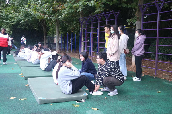 上午8:00测试正式开始,所有参与人员不畏寒风,爱岗敬业,关怀鼓励学生,公平对待每一个学生。每项测试开始前,教师和学生助理们给参与测试的学生强调安全事项,并带领大家进行热身活动,鼓励大家努力测试,发挥出最好的水平。